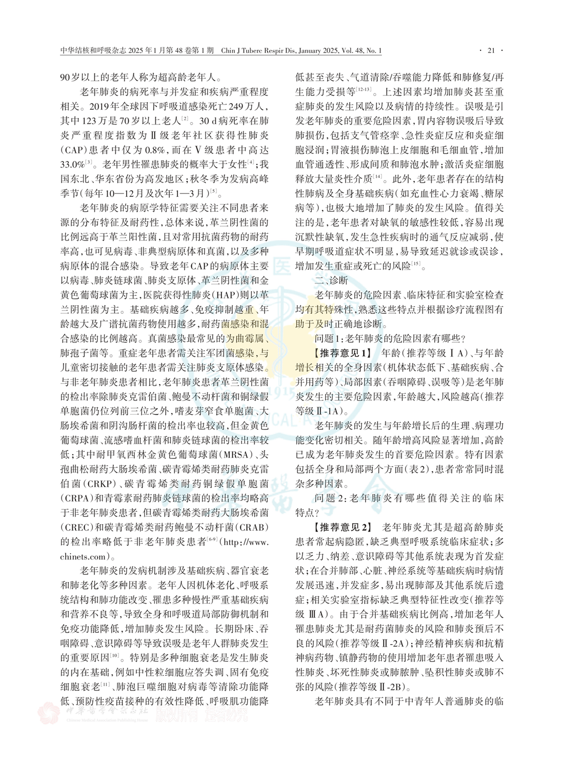 老年肺炎临床诊断治疗专家共识(2024年版)