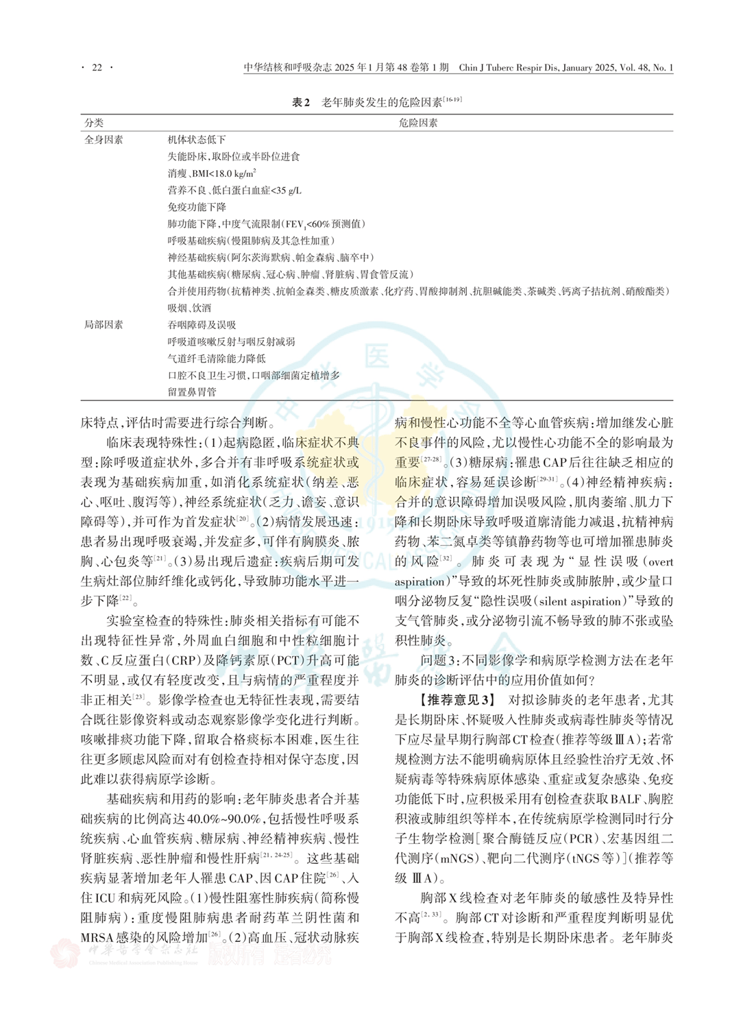 老年肺炎临床诊断治疗