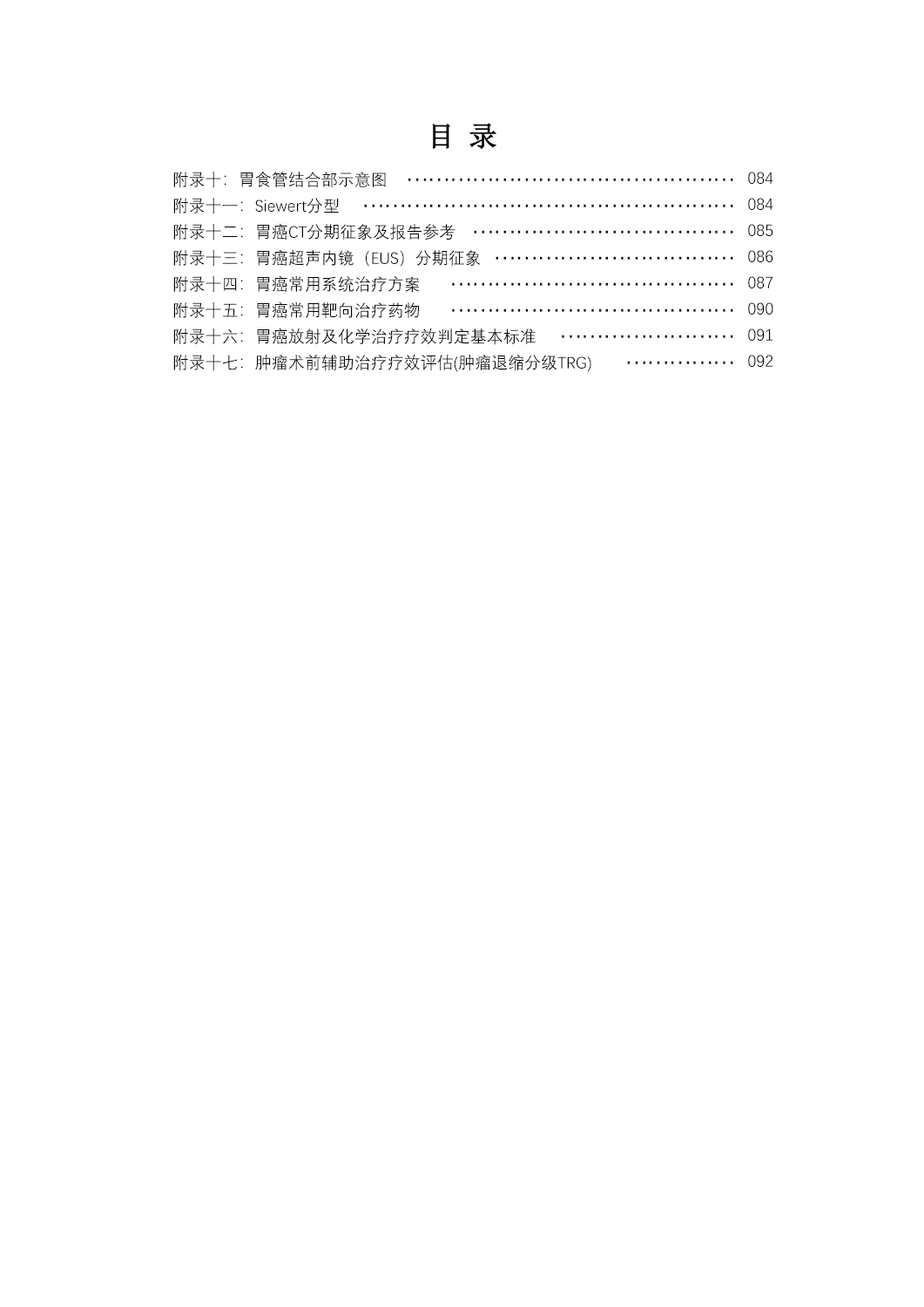 胃癌诊疗指南(2022年版)目录