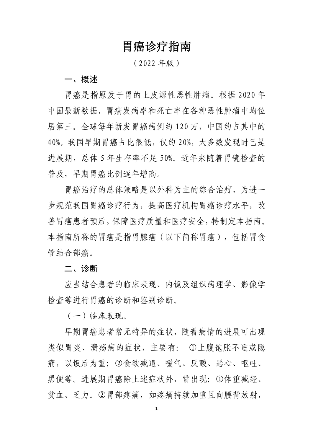 胃癌诊疗指南2022版