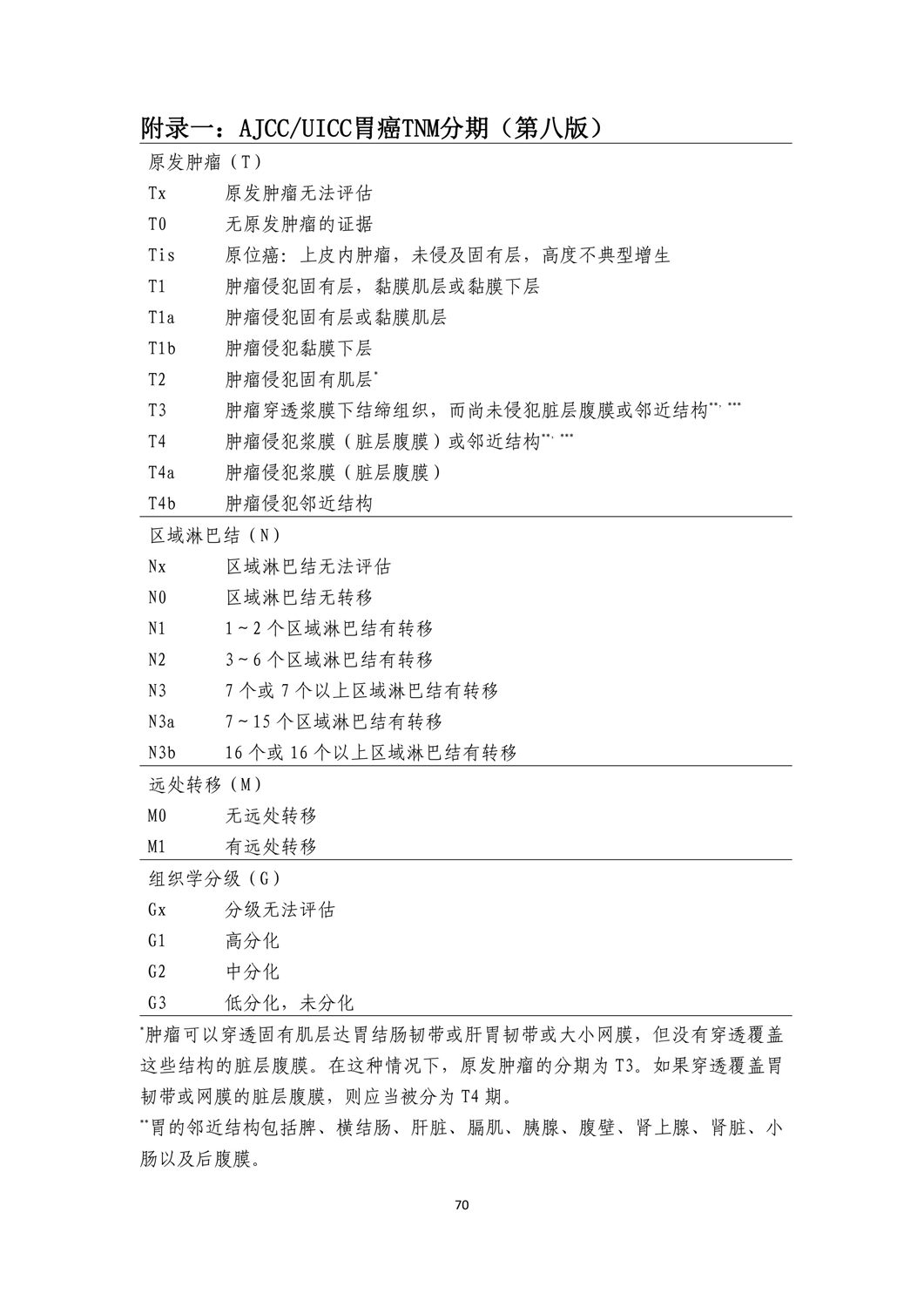附录一:AJCC/UICC胃癌TNM分期(第8版)
