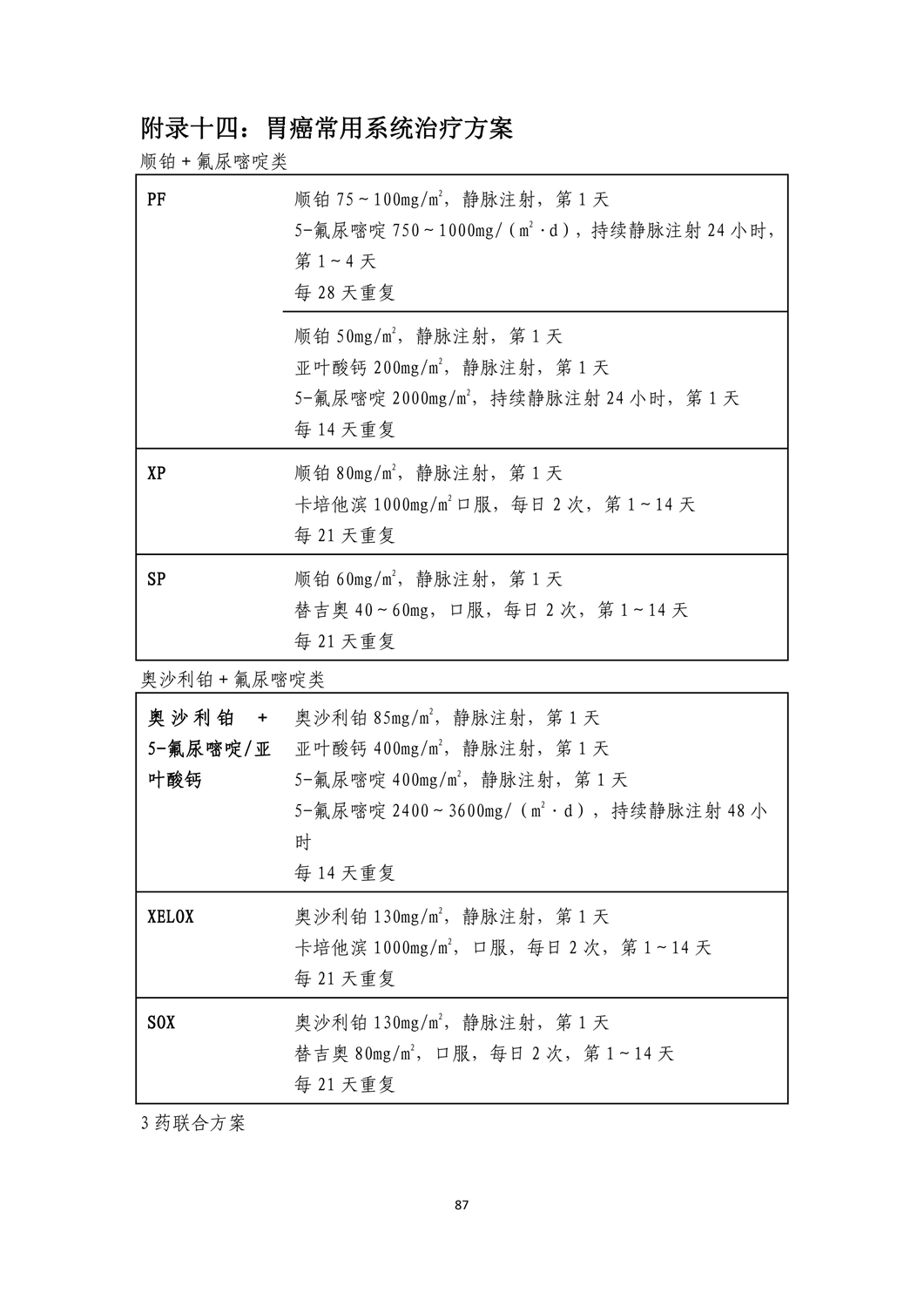 附录十四:胃癌常用系统治疗方案