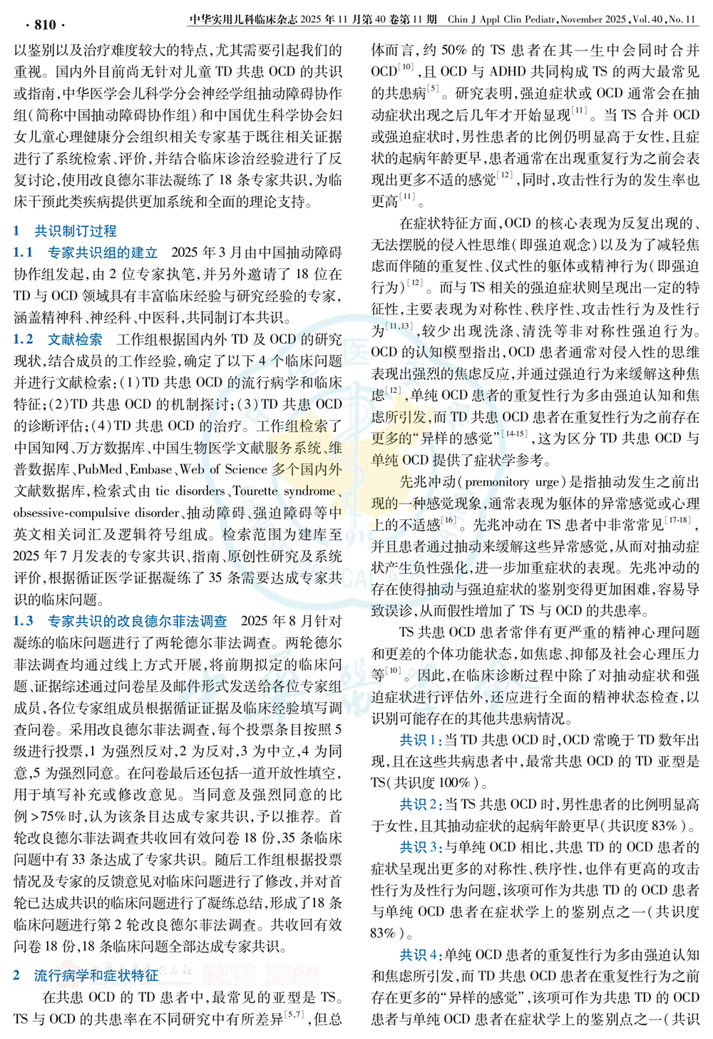 儿童抽动障碍共患强迫障碍诊断与治疗专家共识(2025年)