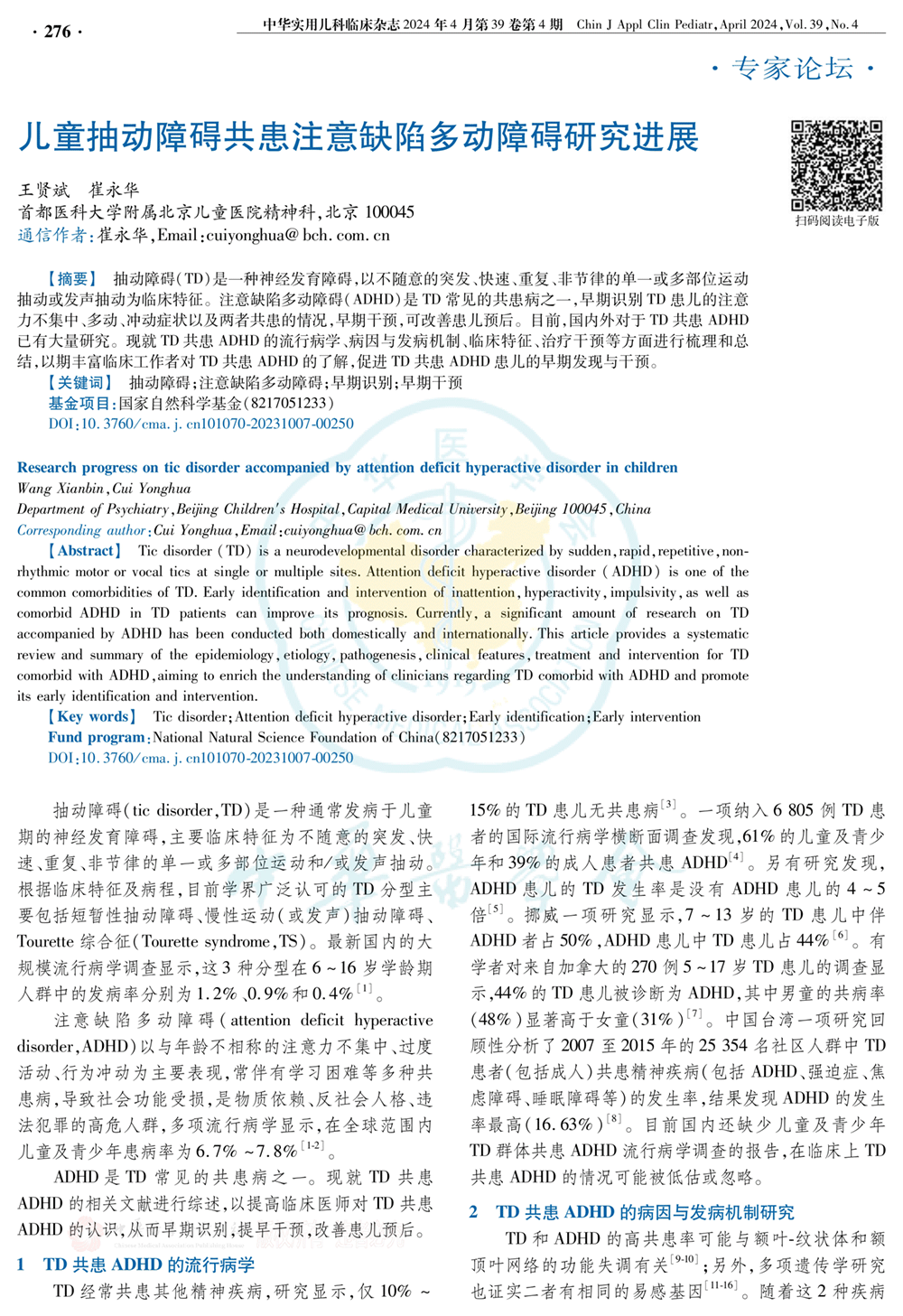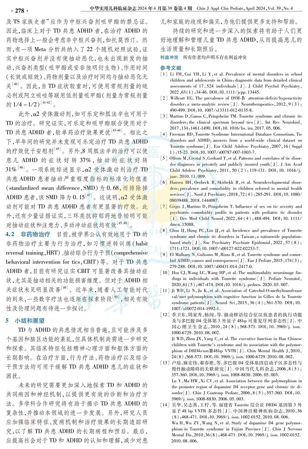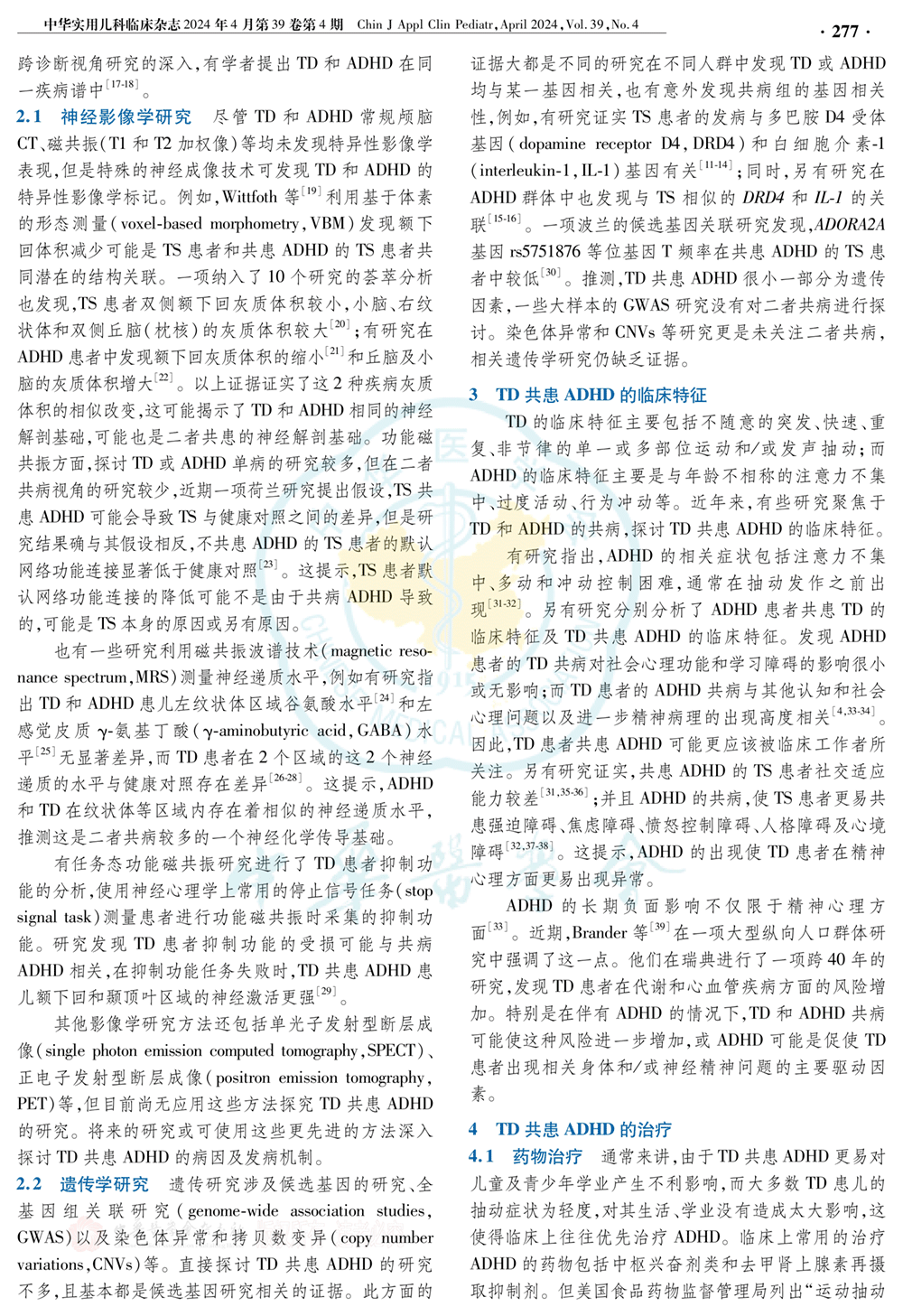 儿童抽动障碍共患注意缺陷多动障碍研究进展(2024年) 共4页