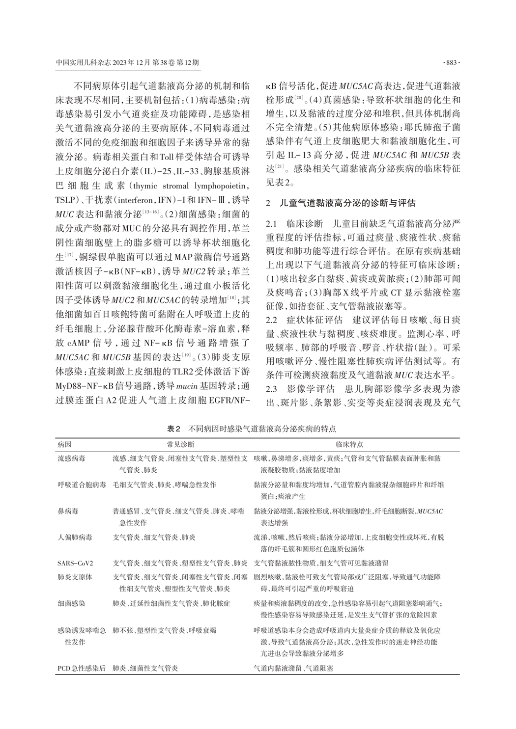2、儿童气道黏液高分泌的诊断与评估:不同病因感染的特点