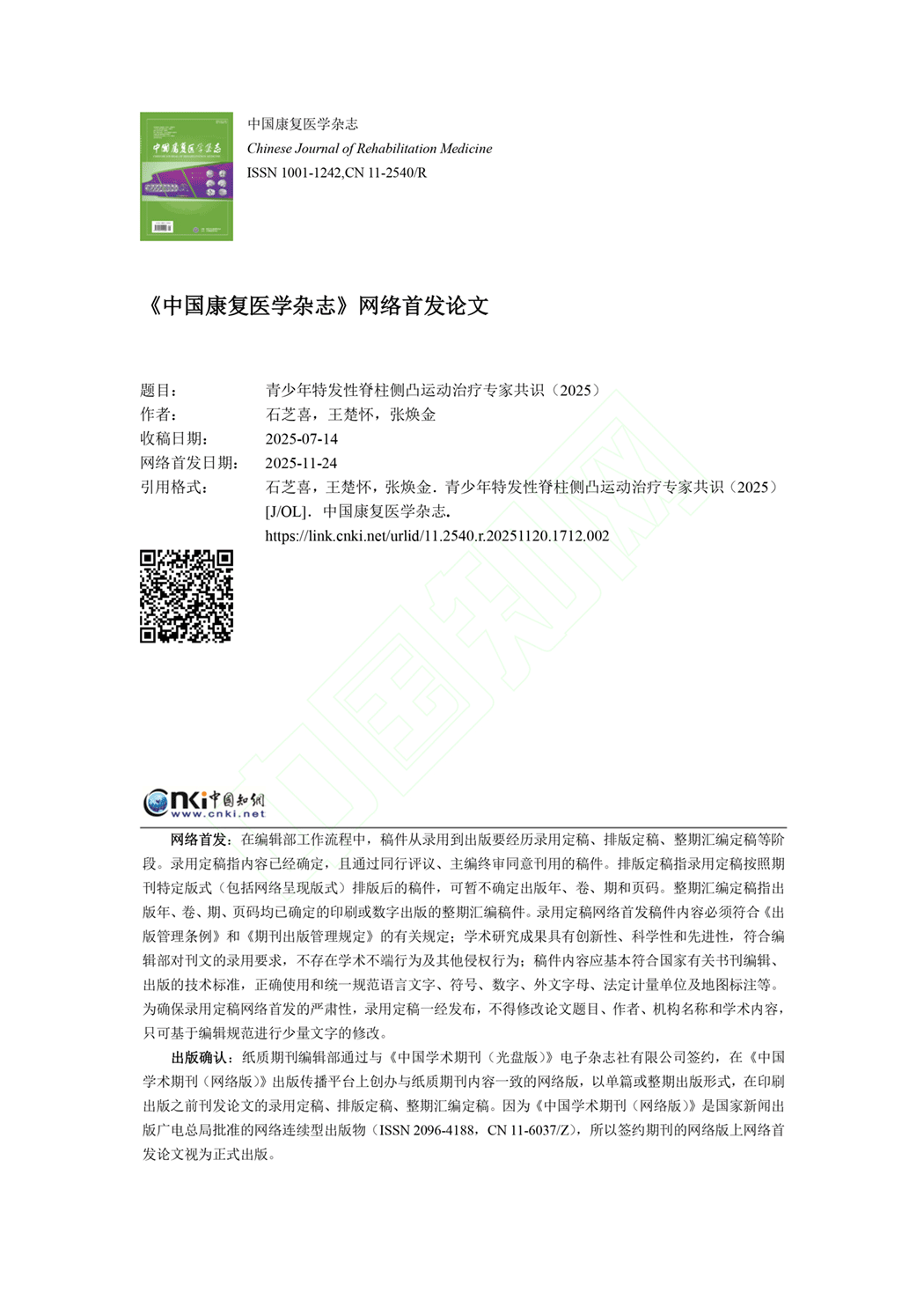 青少年特发性脊柱侧凸运动治疗专家共识(2025年)