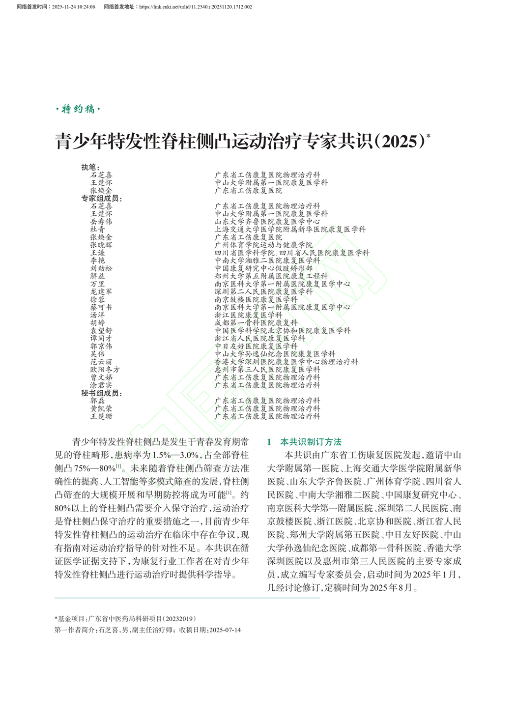 青少年特发性脊柱侧凸运动治疗专家共识(2025年)
