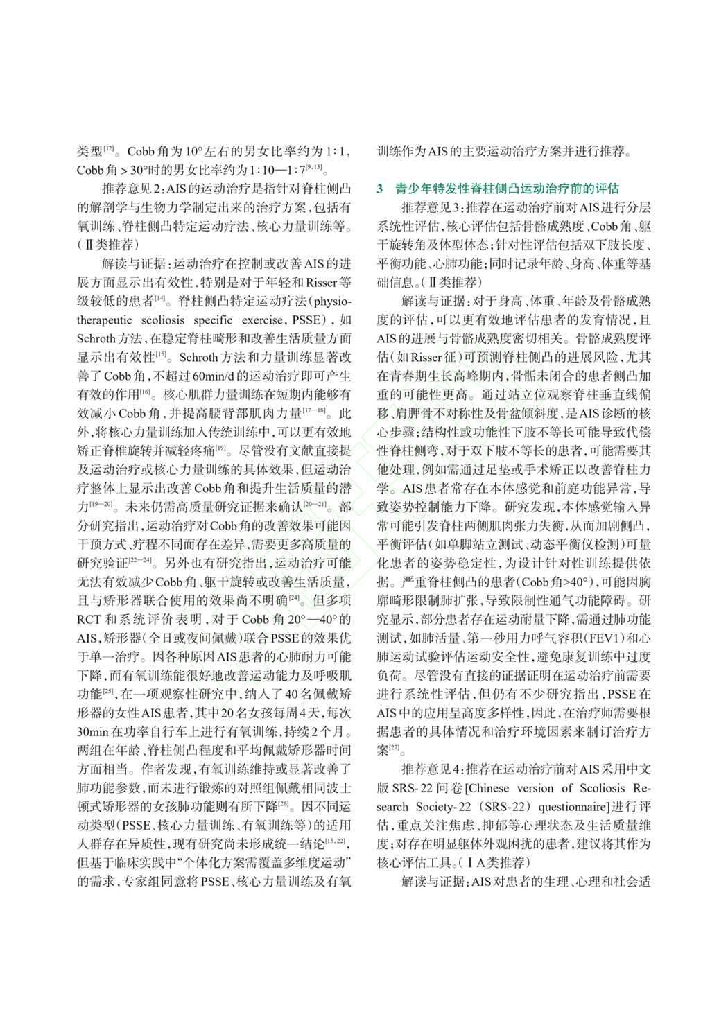 3、青少年特发性脊柱侧凸运动治疗前的评估