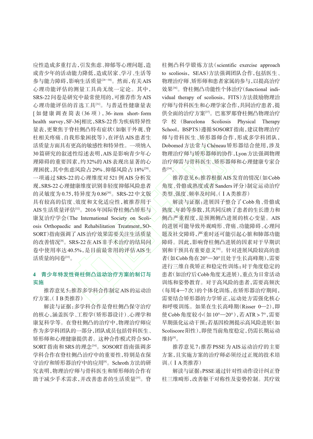 4、青少年特发性脊柱侧凸运动治疗方案的制订与实施