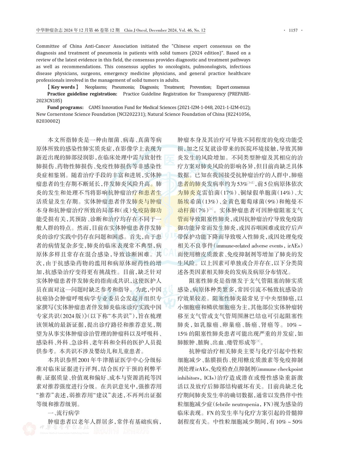 实体肿瘤患者伴发肺炎临床诊疗实践中国专家共识(2024版)