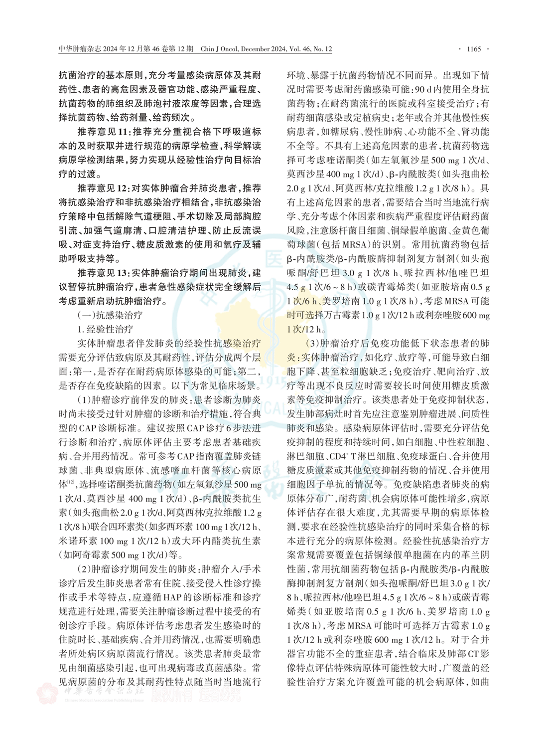 实体肿瘤伴发肺炎临床诊疗