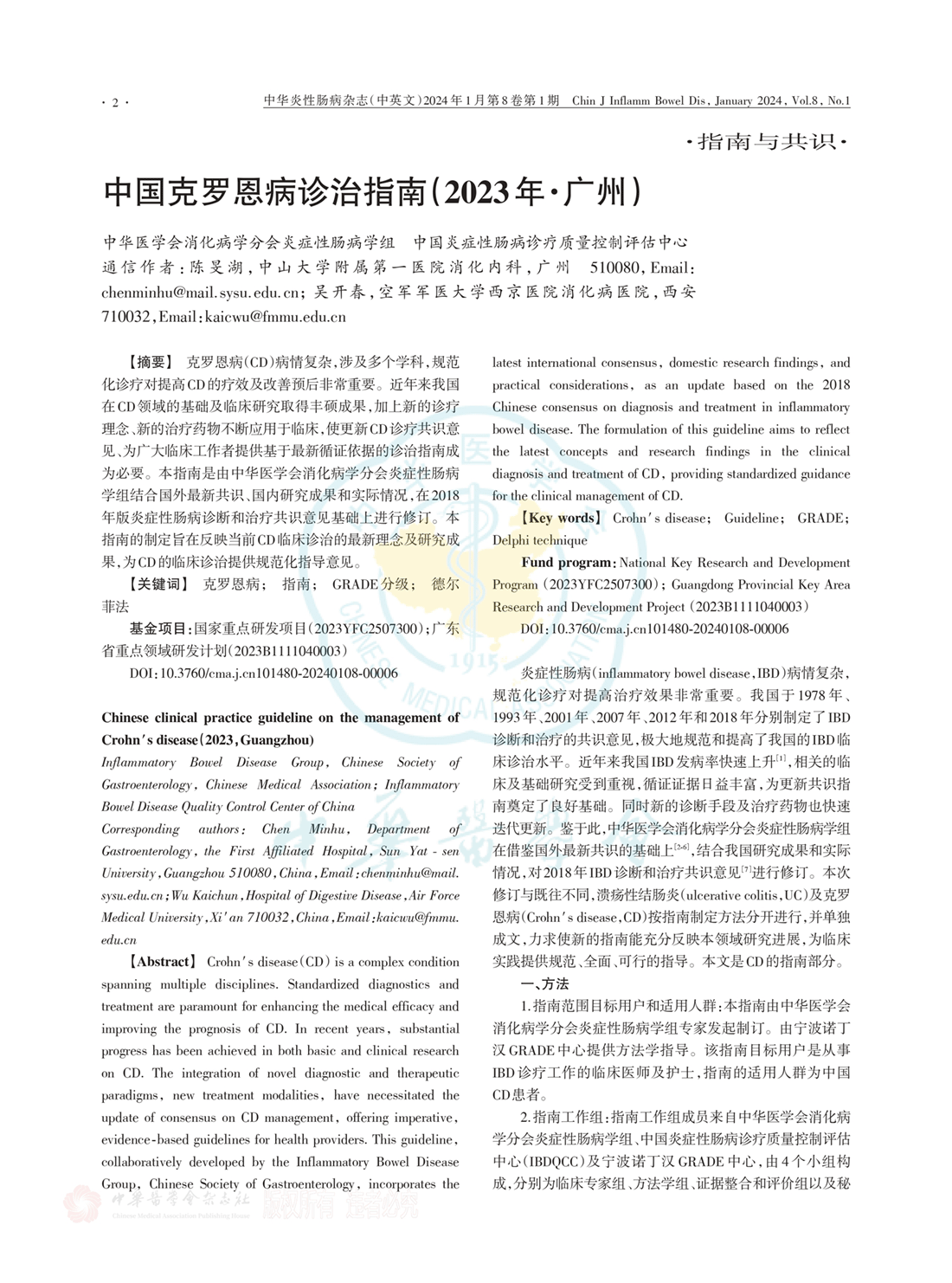 中国克罗恩病诊治指南(2023年 广州)