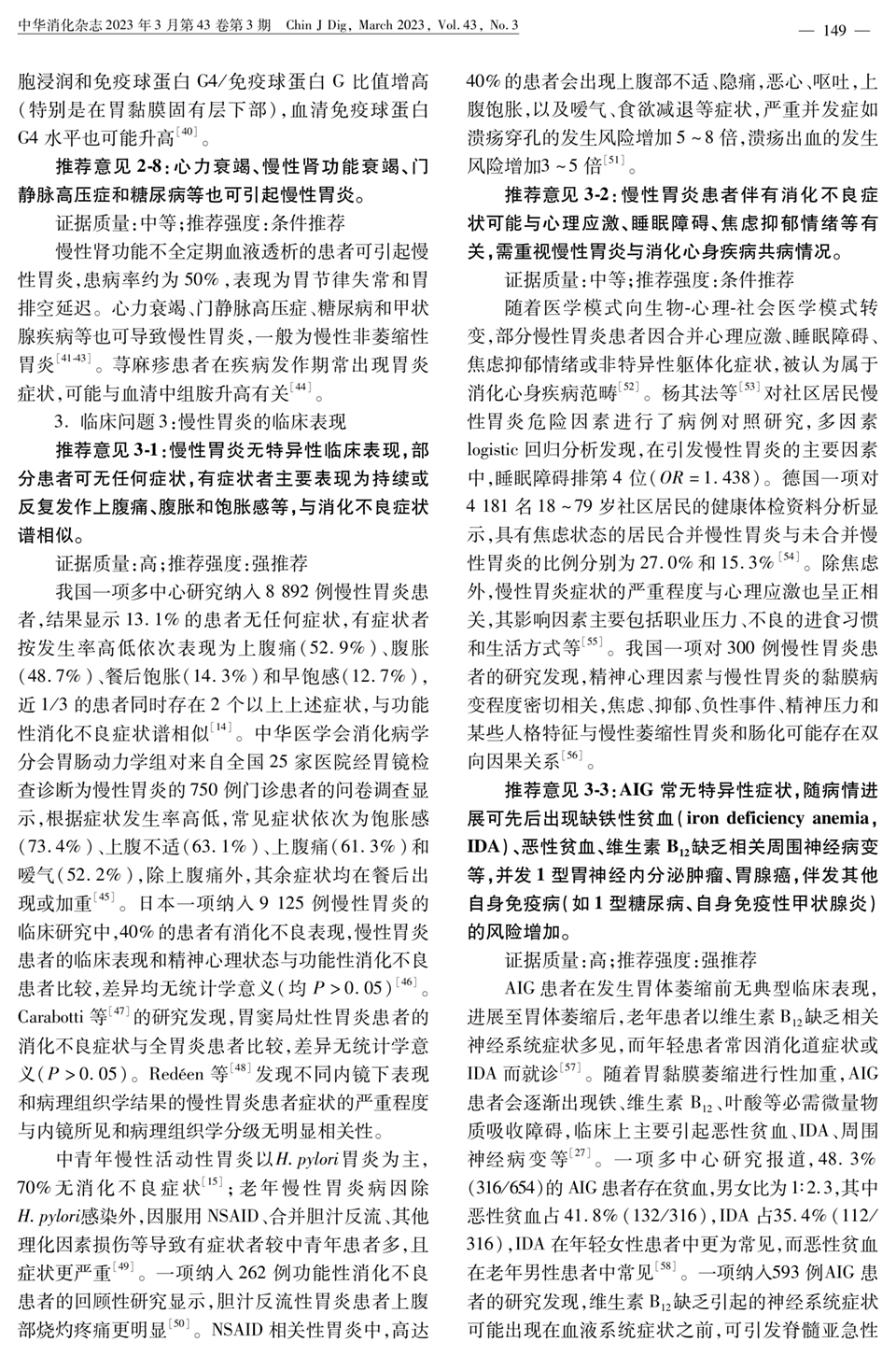 二、临床问题和推荐意见:流行病学特征、病因和分类、胃炎分类