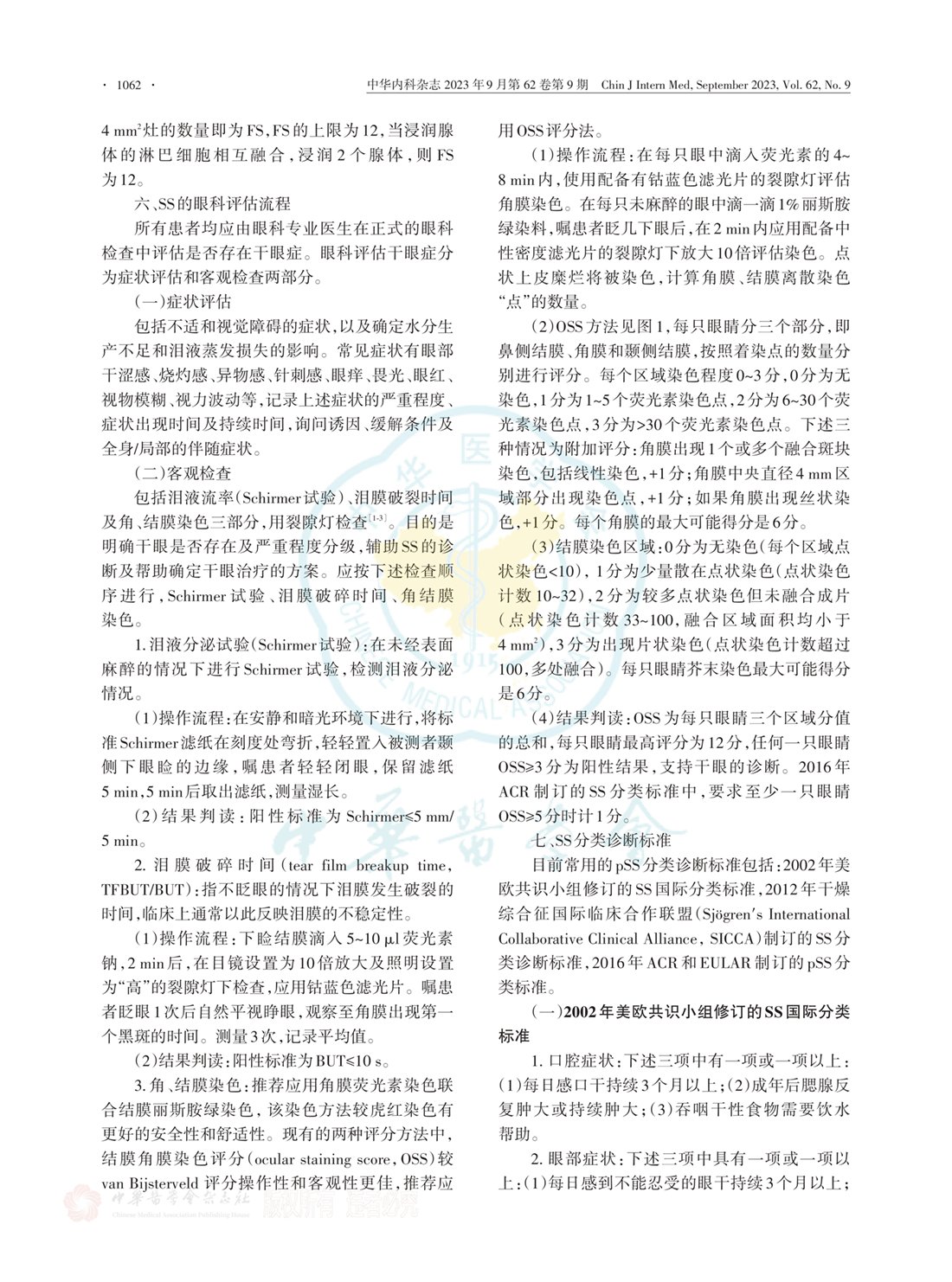 六、SS的眼科评估流程 七、SS分类诊断标准
