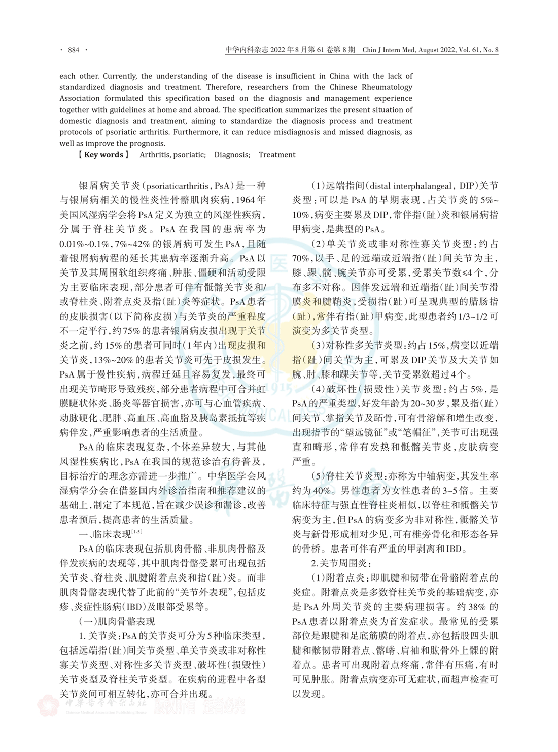 银屑病关节炎诊疗规范(2022年)