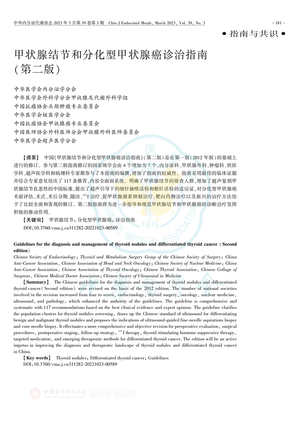 甲状腺结节和分化型甲状腺癌诊治指南(第二版)(2023年)