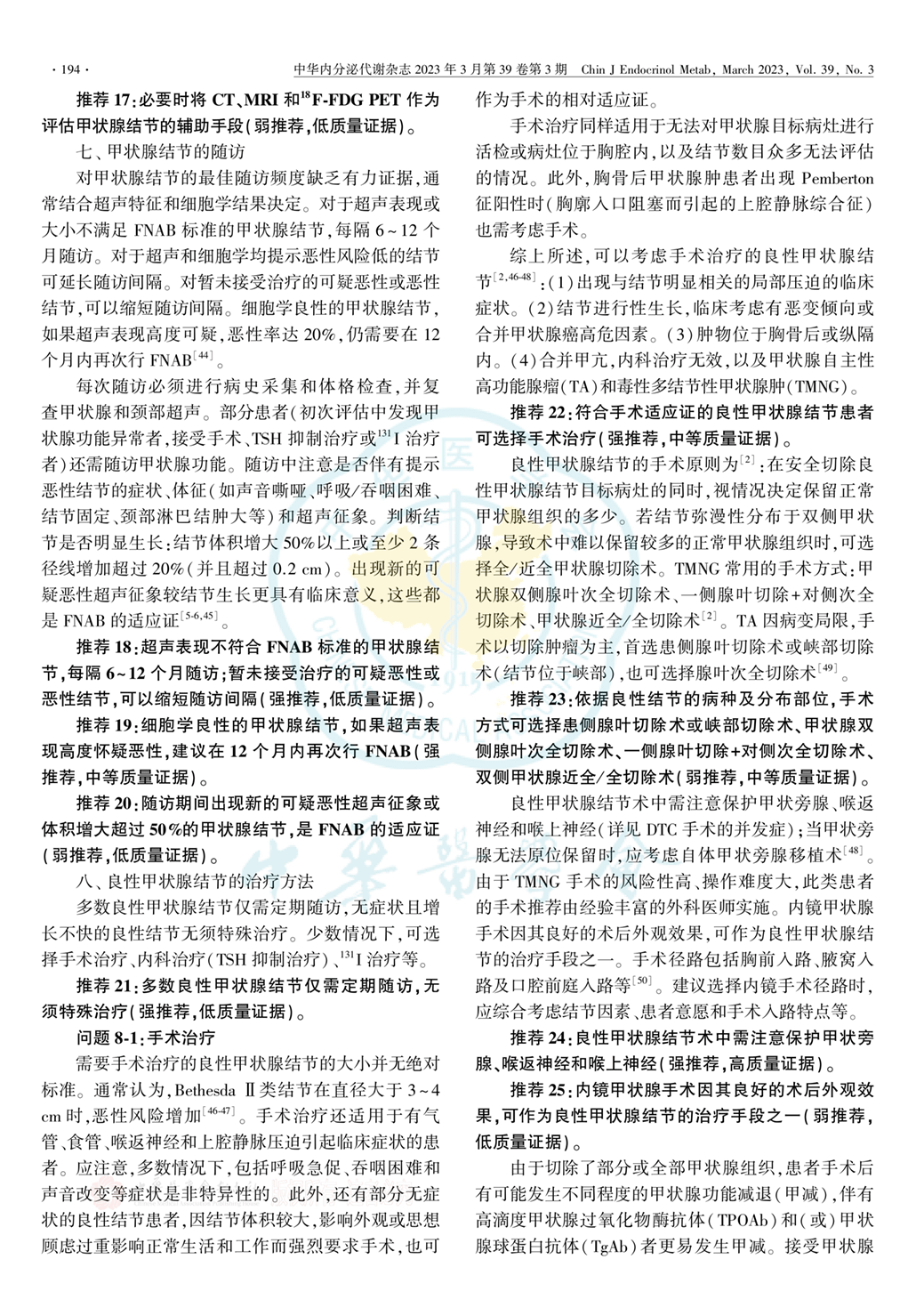 九、性质未确定结节的处理 十、妊娠妇女的处理 十一、评估和处理流程