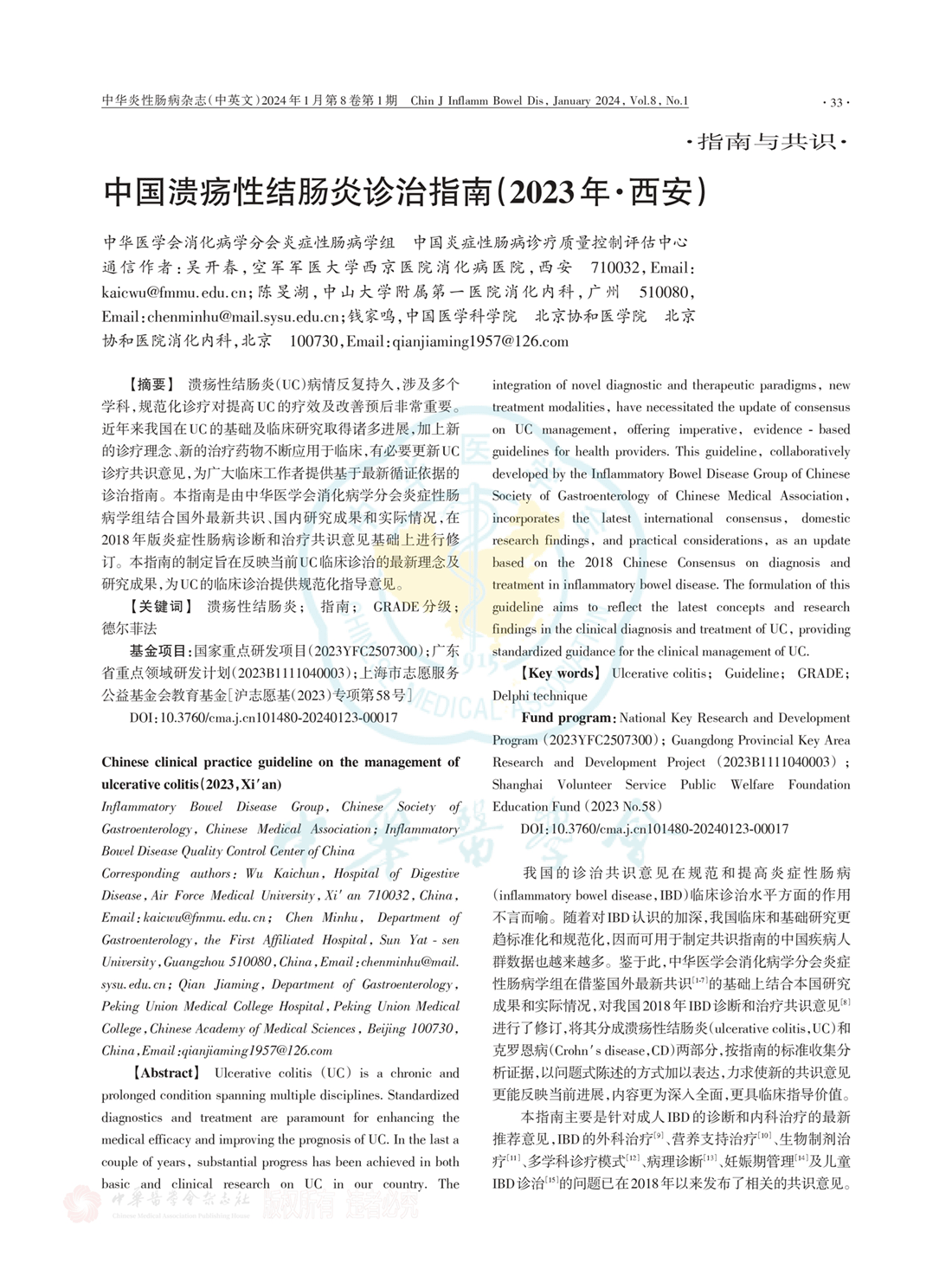 中国溃疡性结肠炎诊治指南(西安 2023年)