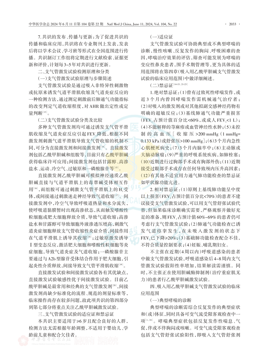 二、支气管激发试验检测原理和分类 三、适应证和禁忌证