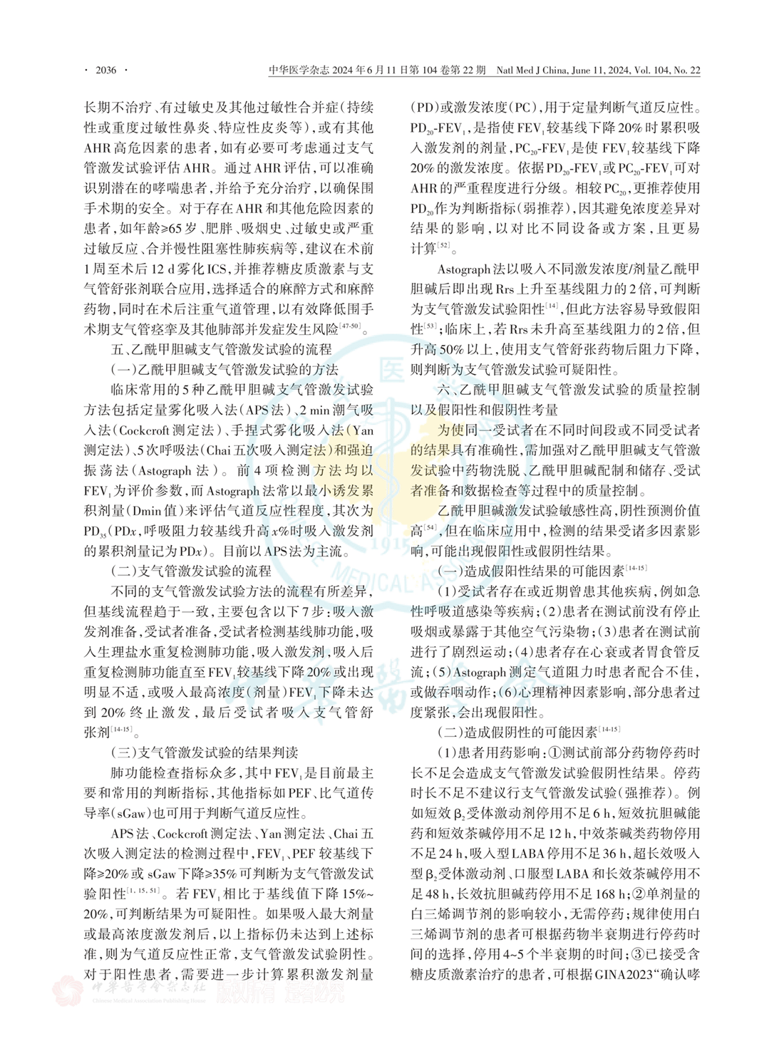五、乙酰甲胆碱支气管激发试验的方法 六、质量控制及假阳性和假阴性考量