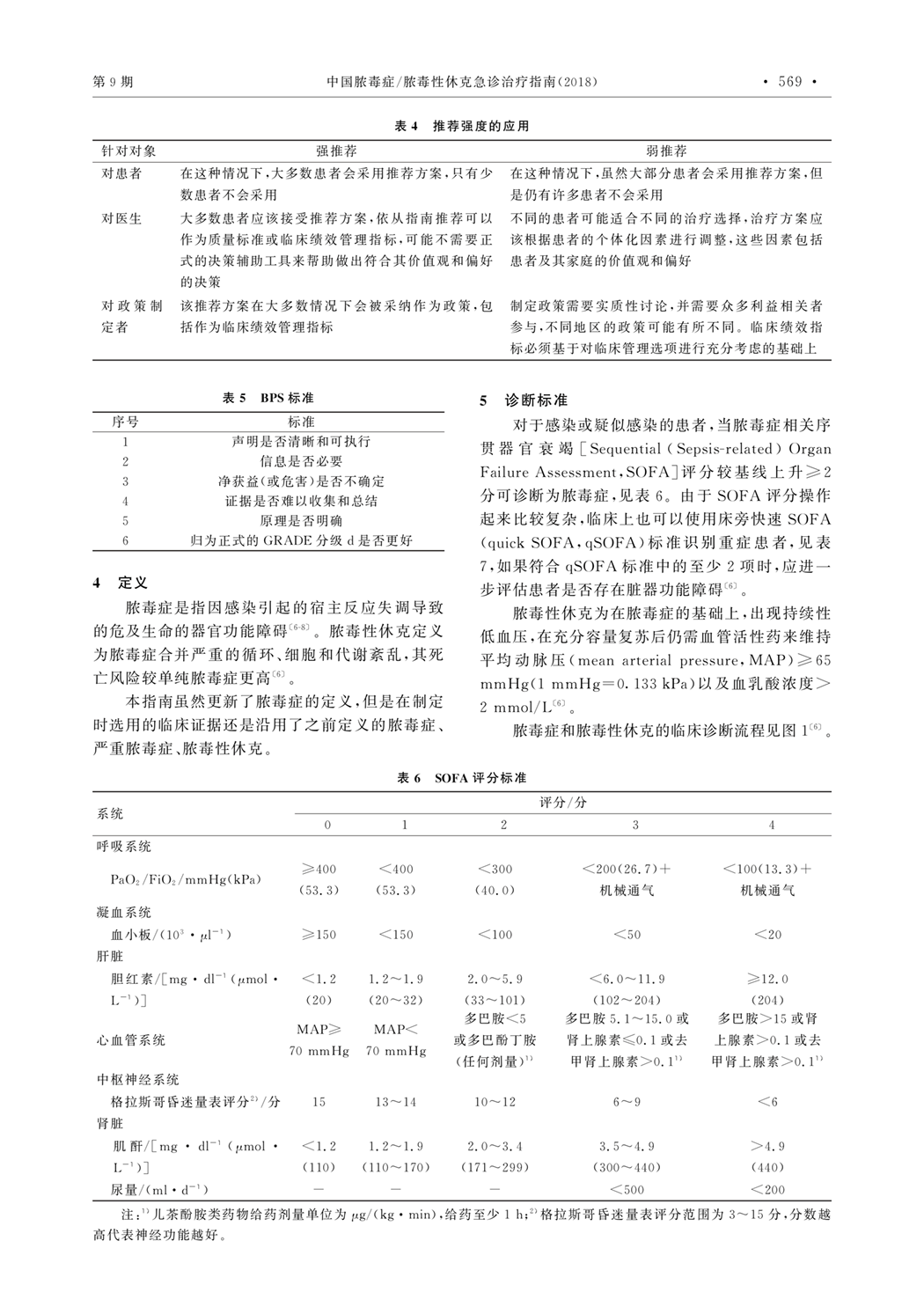 4、定义 5、诊断标准:SOFA评分标准