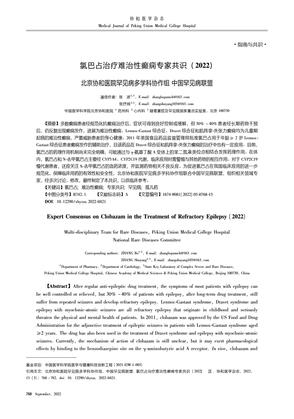 氯巴占治疗难治性癫闲专家共识(2022年)