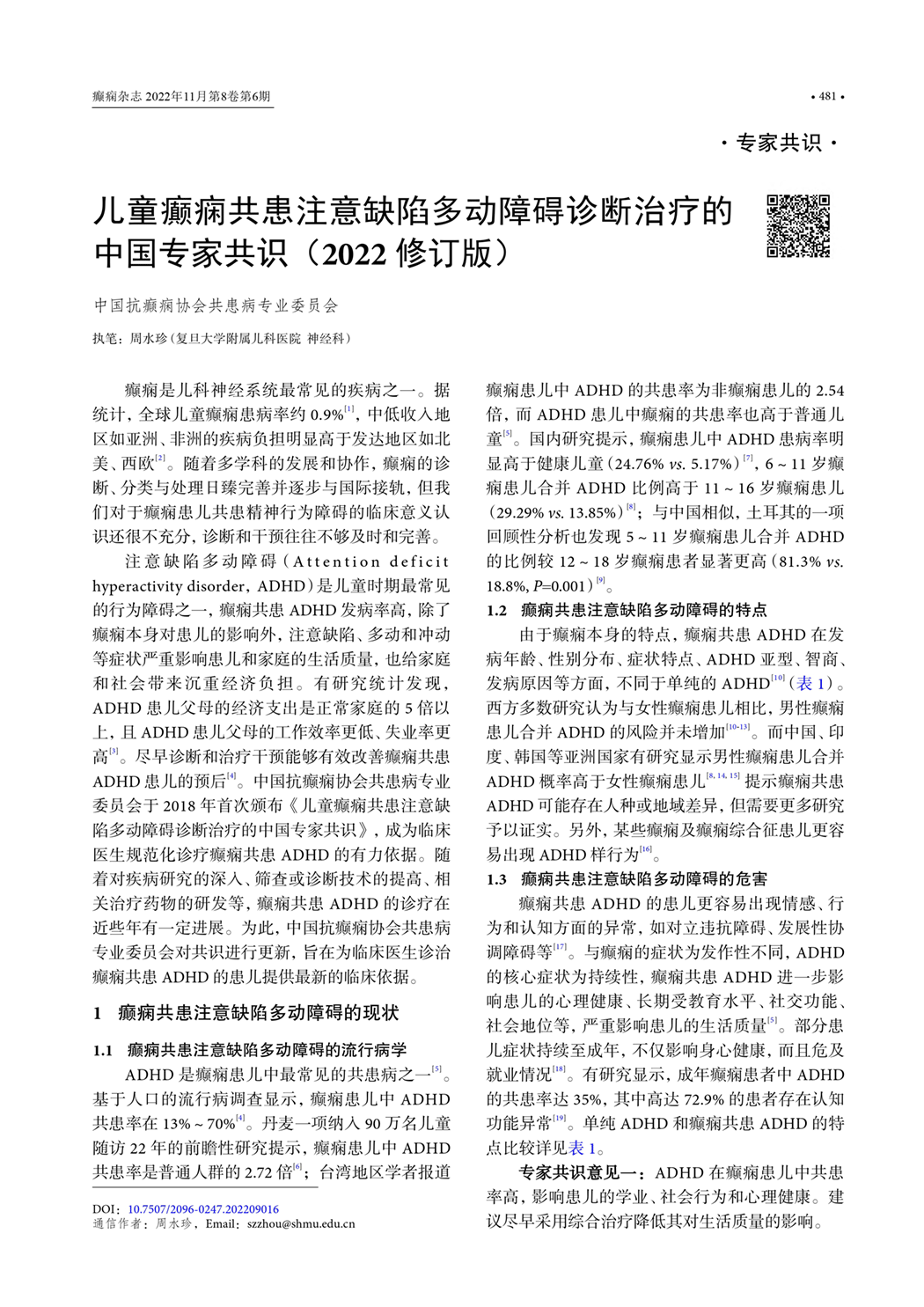 儿童癫痫共患注意缺陷多动障碍诊断治疗的中国专家共识(2022修订版)