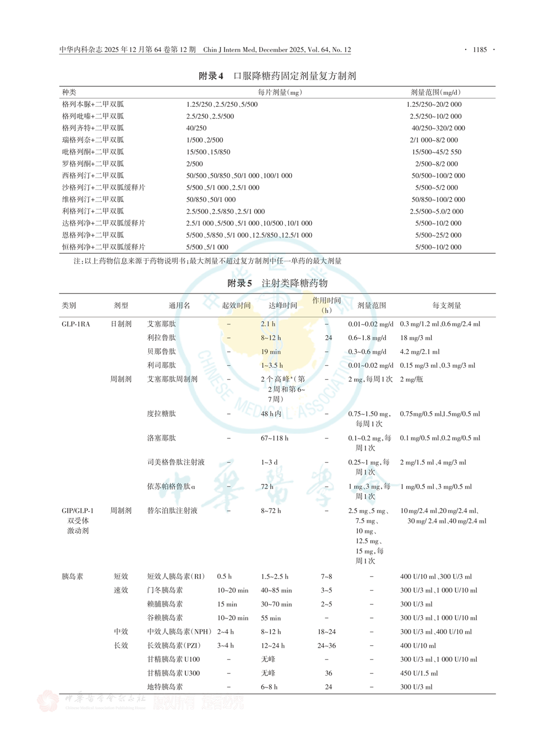 附录4 口服降糖药固定剂量复方制剂 附录5 注射类降糖药物