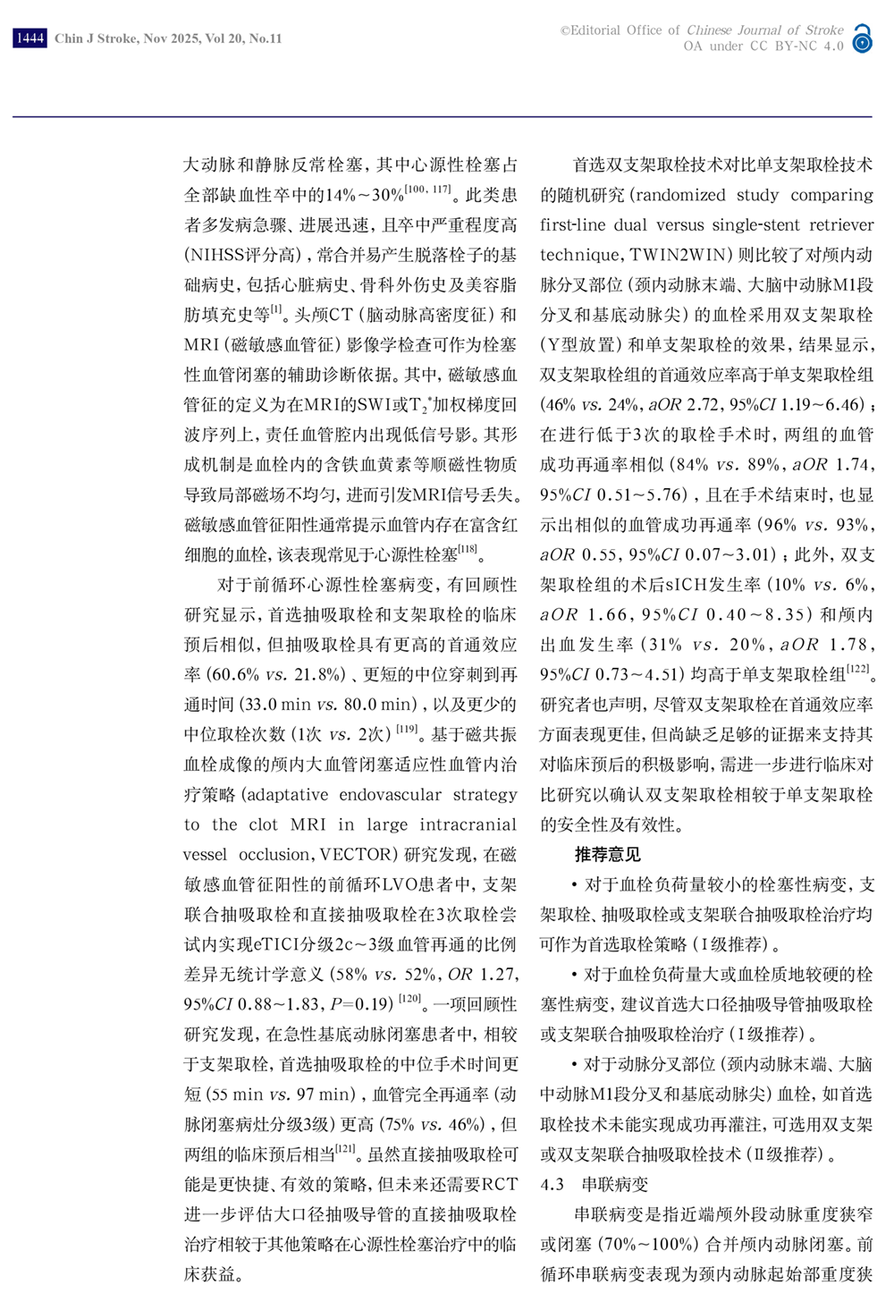 4、不同病因急性缺血性卒中的血管内治疗技术推荐
