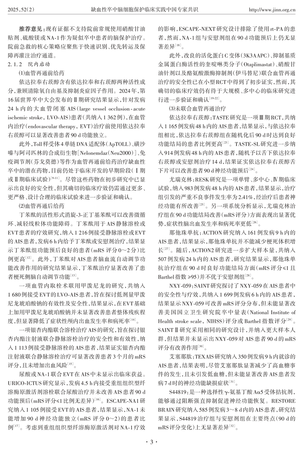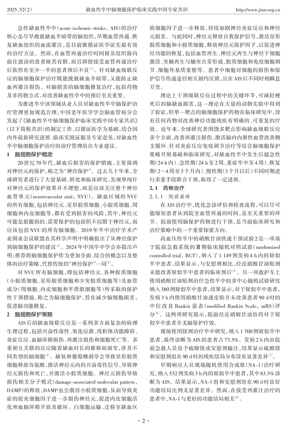 缺血性卒中脑细胞保护临床实践中国专家共识(2025年)