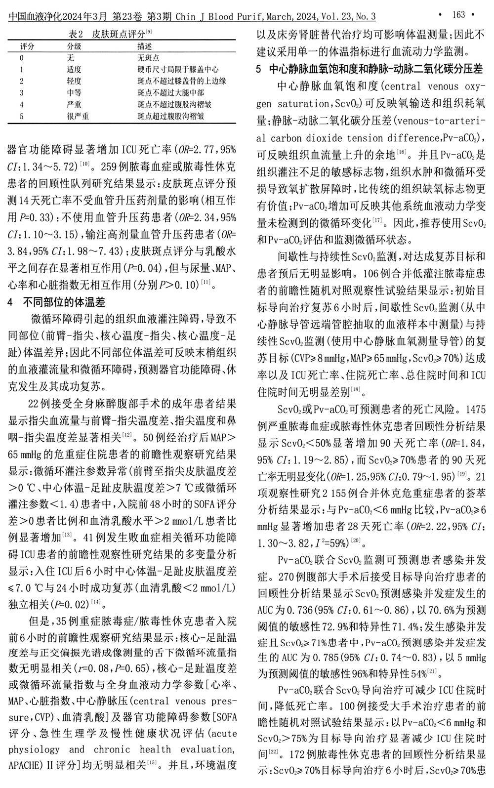 4、不同部位的体温差 5、中心静脉血氧饱和度和静脉-动脉二氧化碳分压差