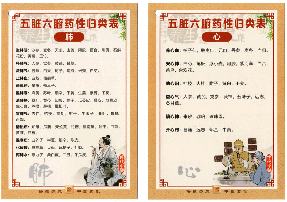 五脏六腑药性归类表:肺、心