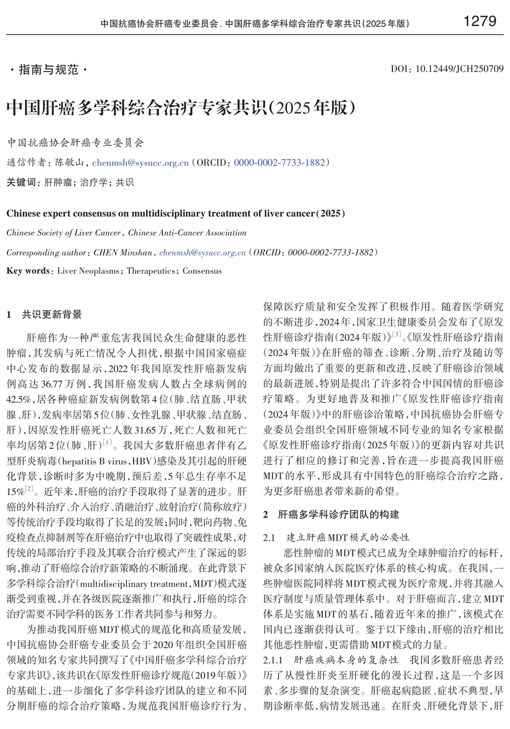 中国肝癌多学科综合治疗专家共识(2025年版)