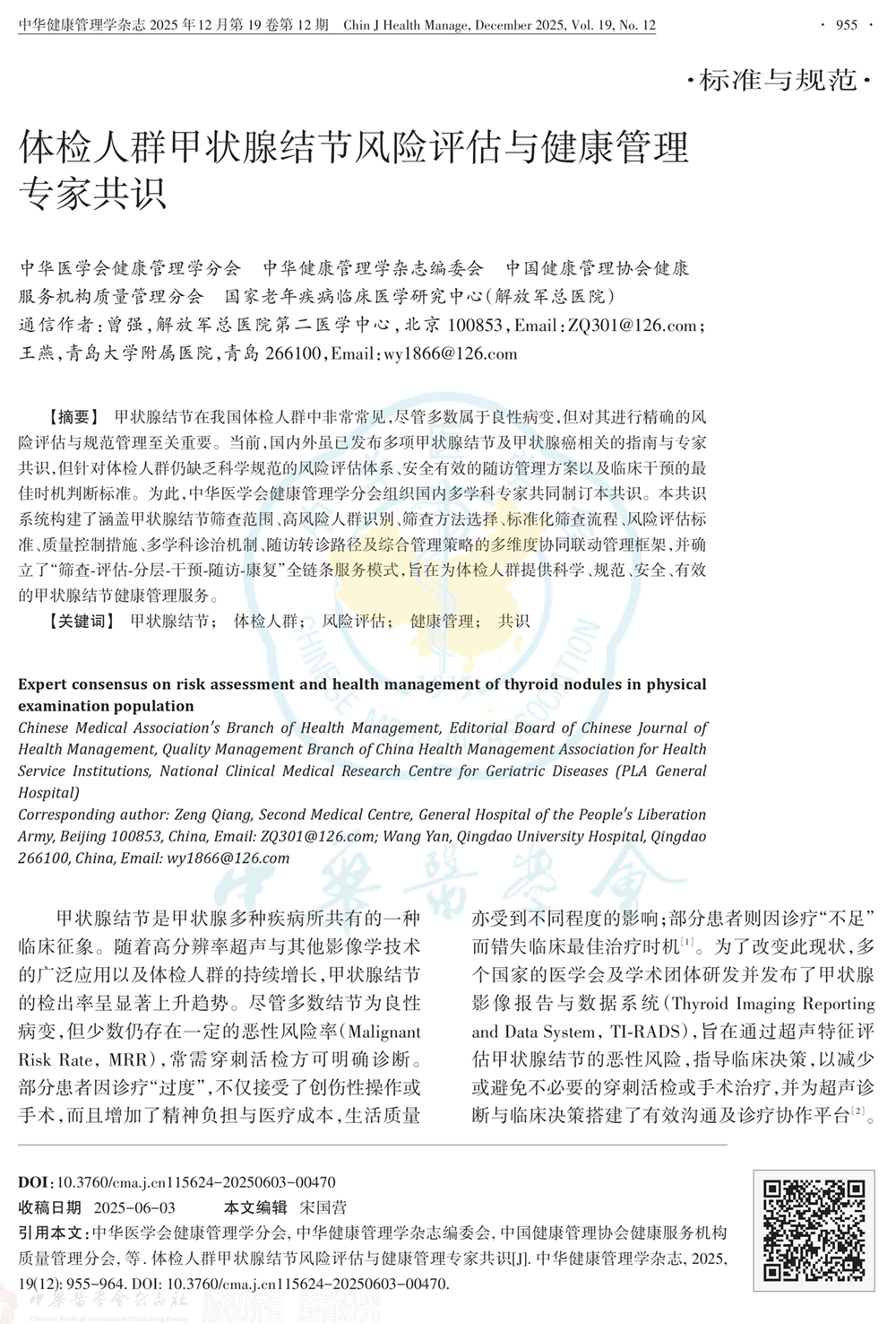 体检人群甲状腺结节风险评估与健康管理专家共识(2025年)