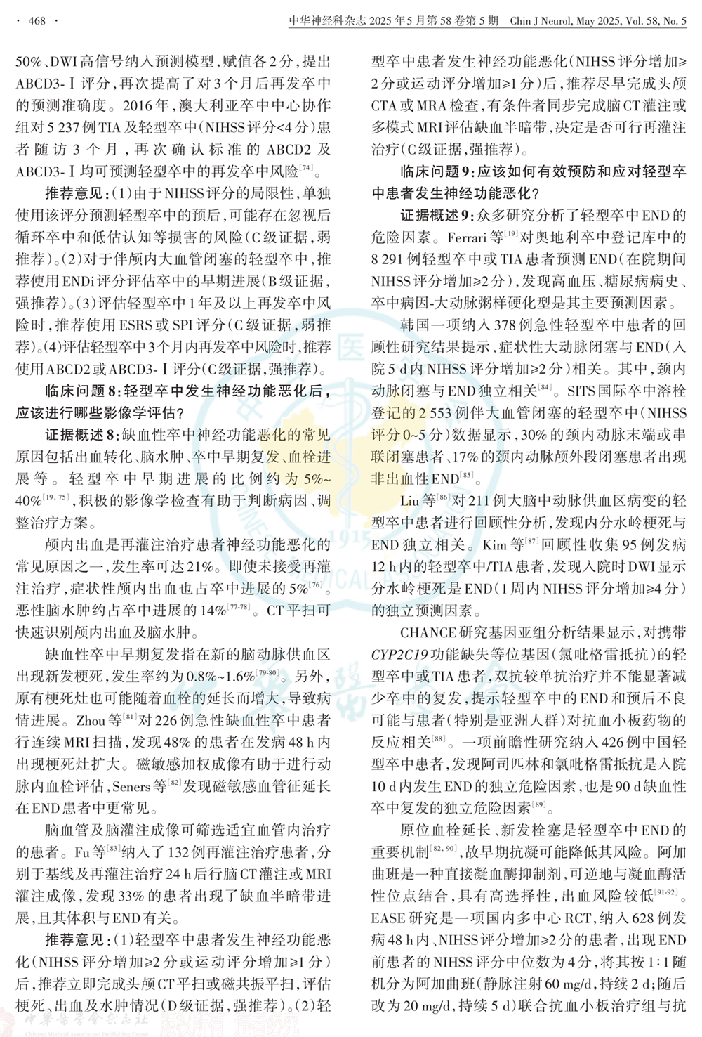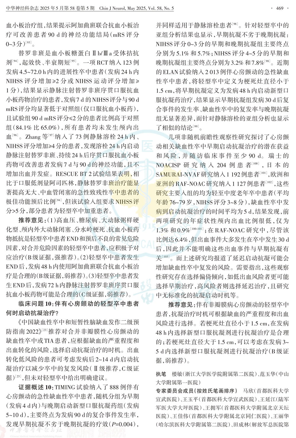 临床问题和推荐意见:定义轻型卒中、是否进行静脉溶栓、抗血小板治疗