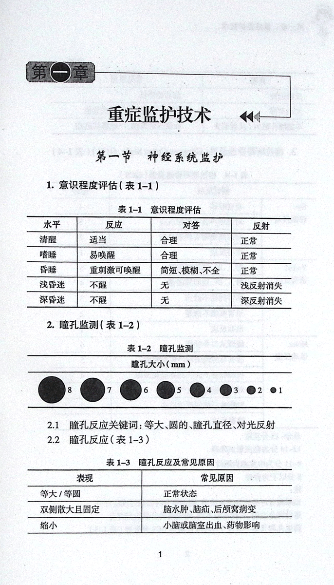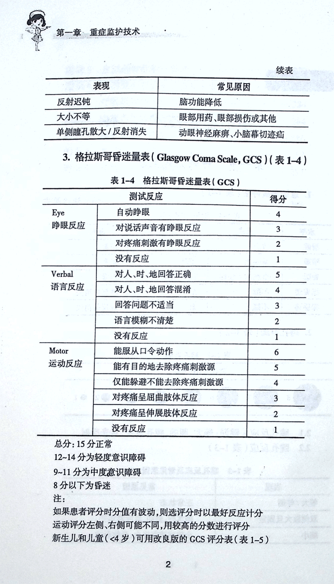 >>意识程度评估/瞳孔监测/格拉斯哥昏迷量表