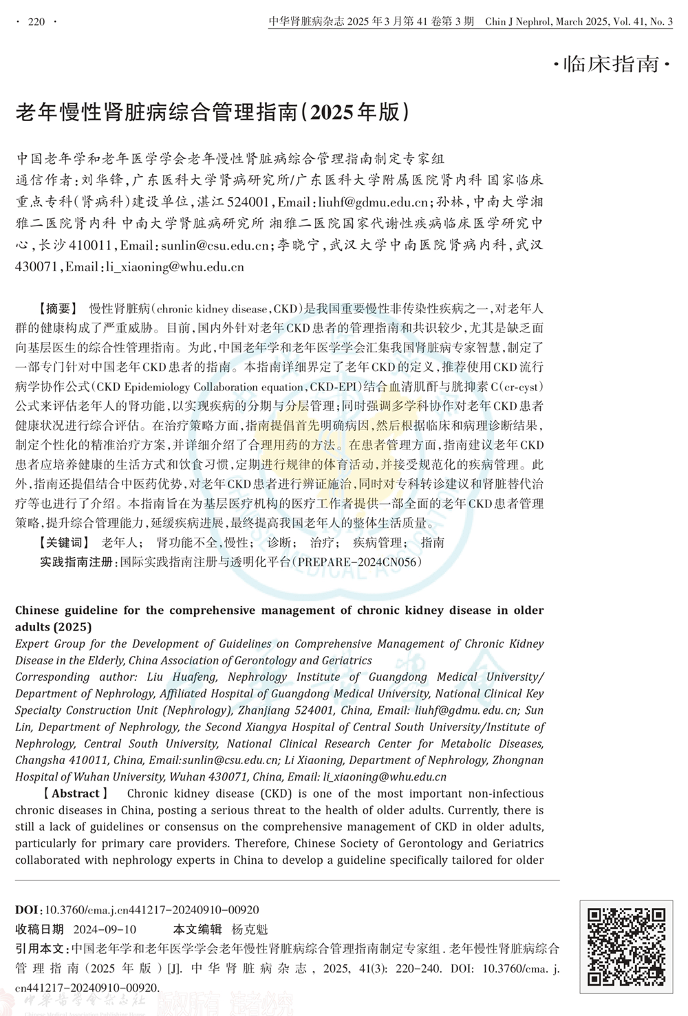 老年慢性肾脏病综合管理指南(2025年版)