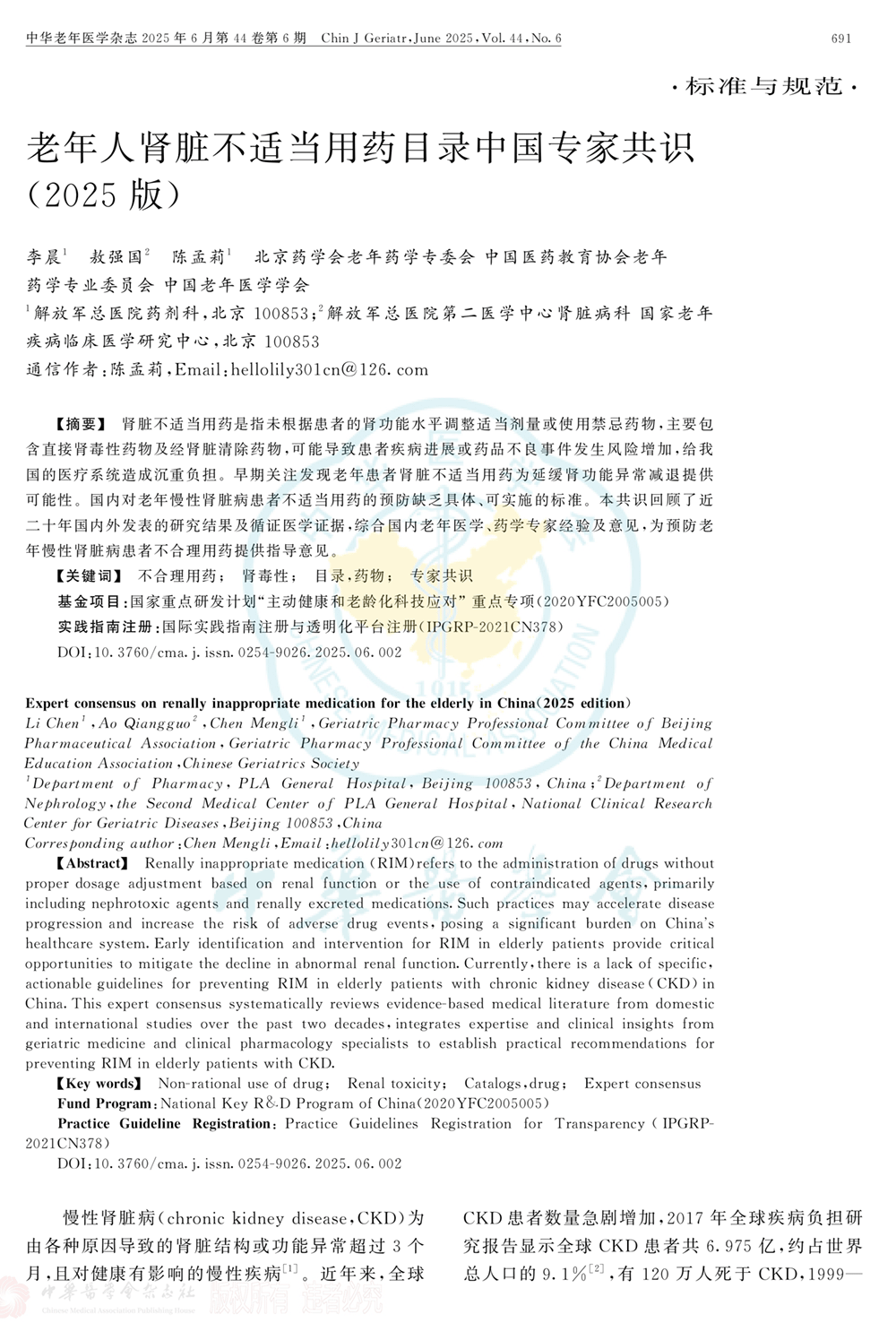 老年人肾脏不适当用药目录中国专家共识(2025年版)