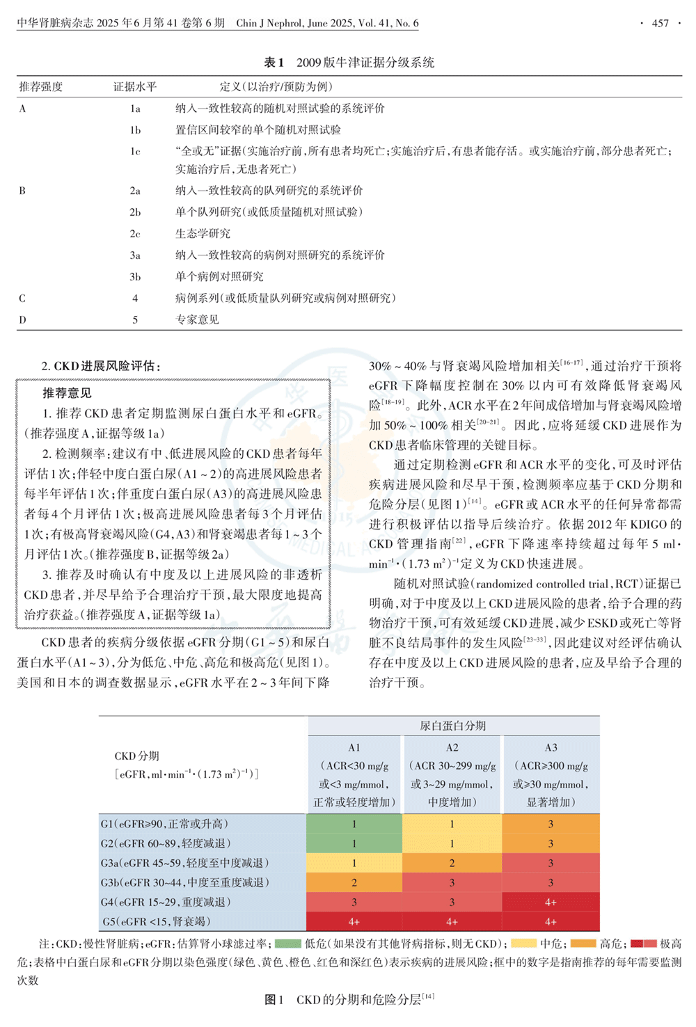 三、CKD患者风险评估和临床管理目标:证据分级系统、分期和危险分层