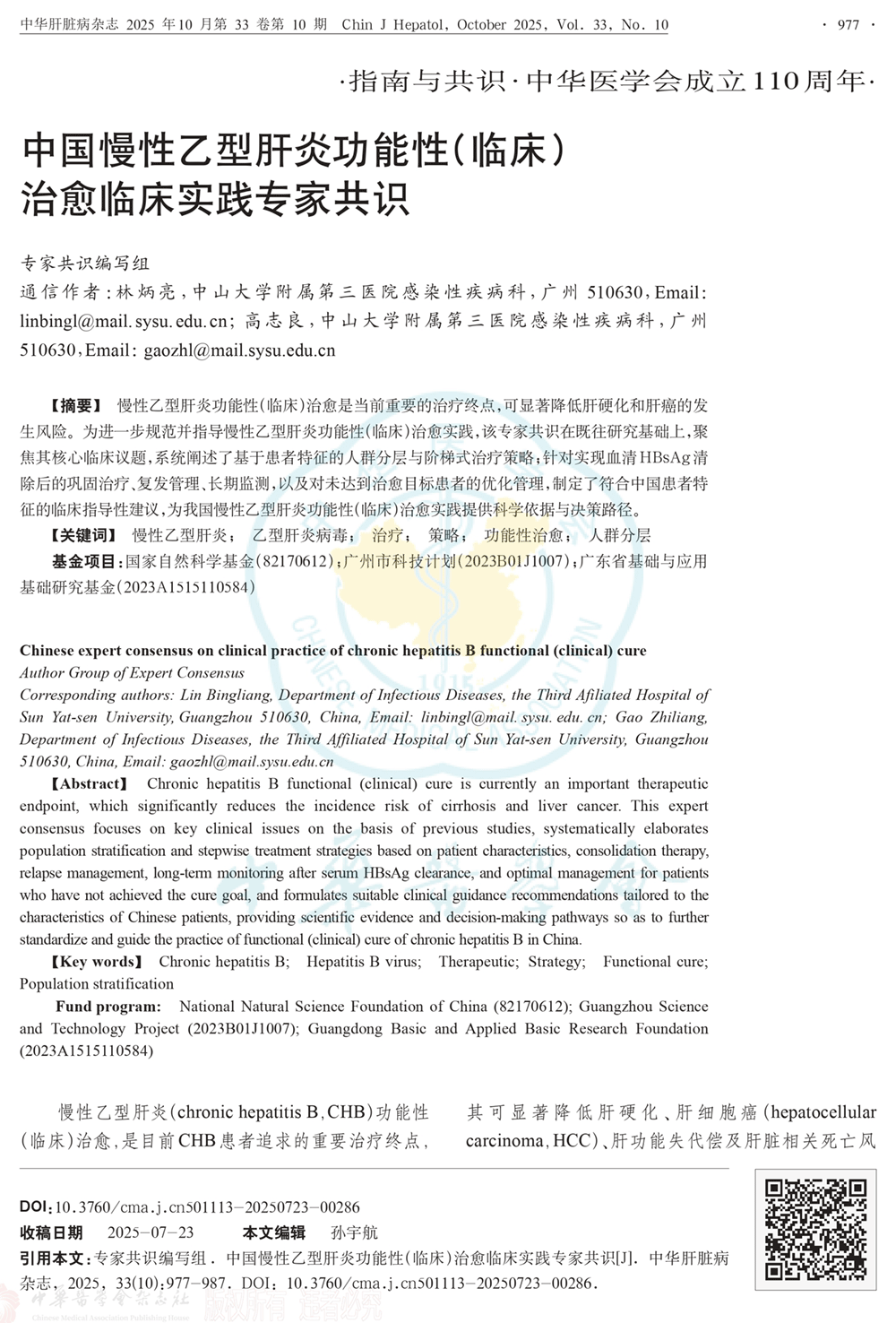 中国慢性乙型肝炎功能性(临床)治愈临床实践专家共识(2025年)