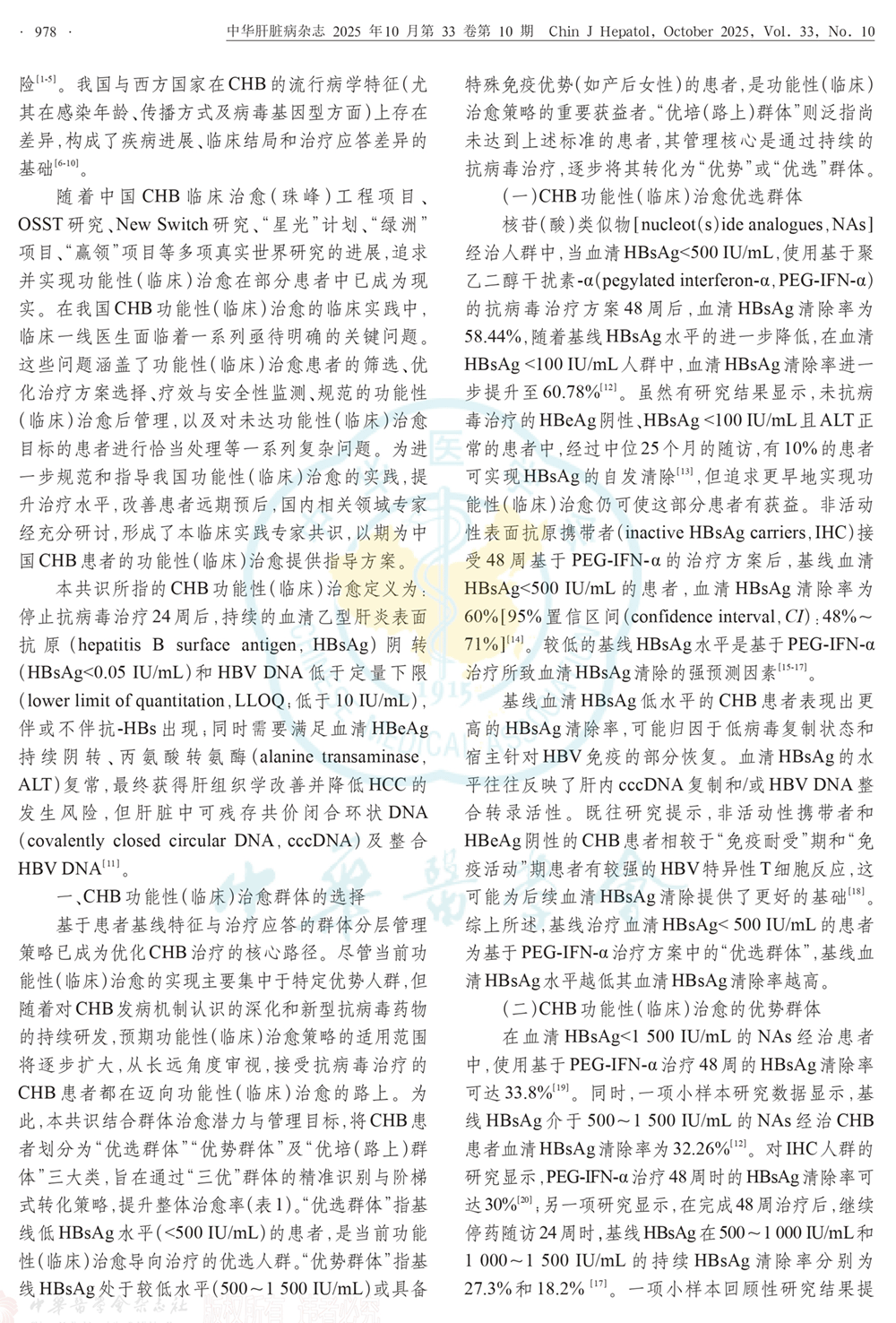中国慢性乙型肝炎功能性(临床)治愈临床实践专家共识(2025年)