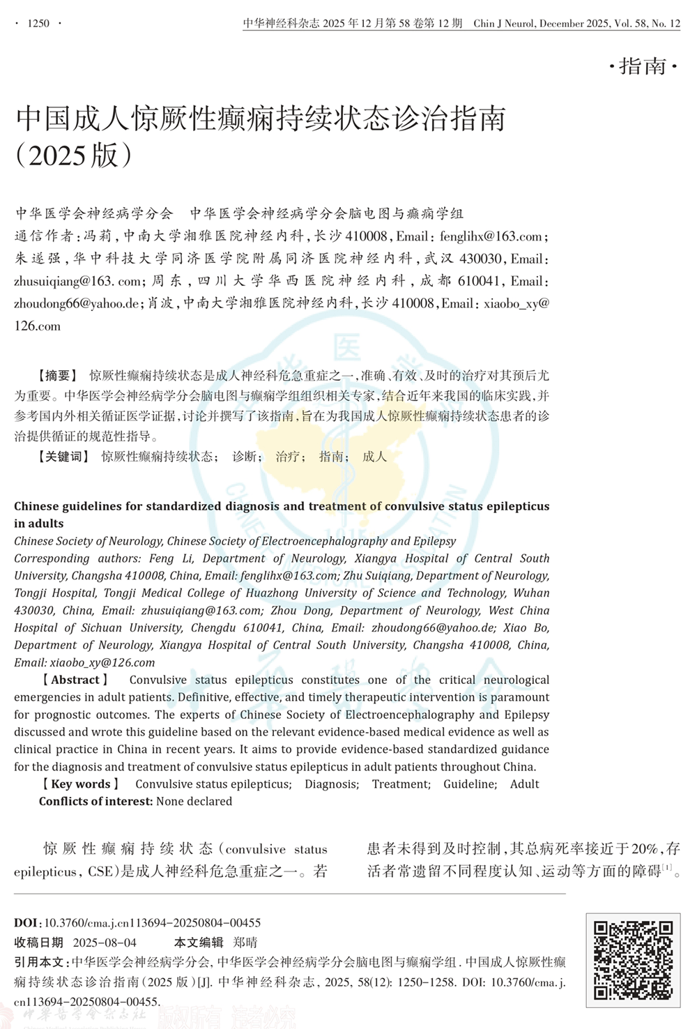 中国成人惊厥性癫痫持续状态诊治指南(2025版)