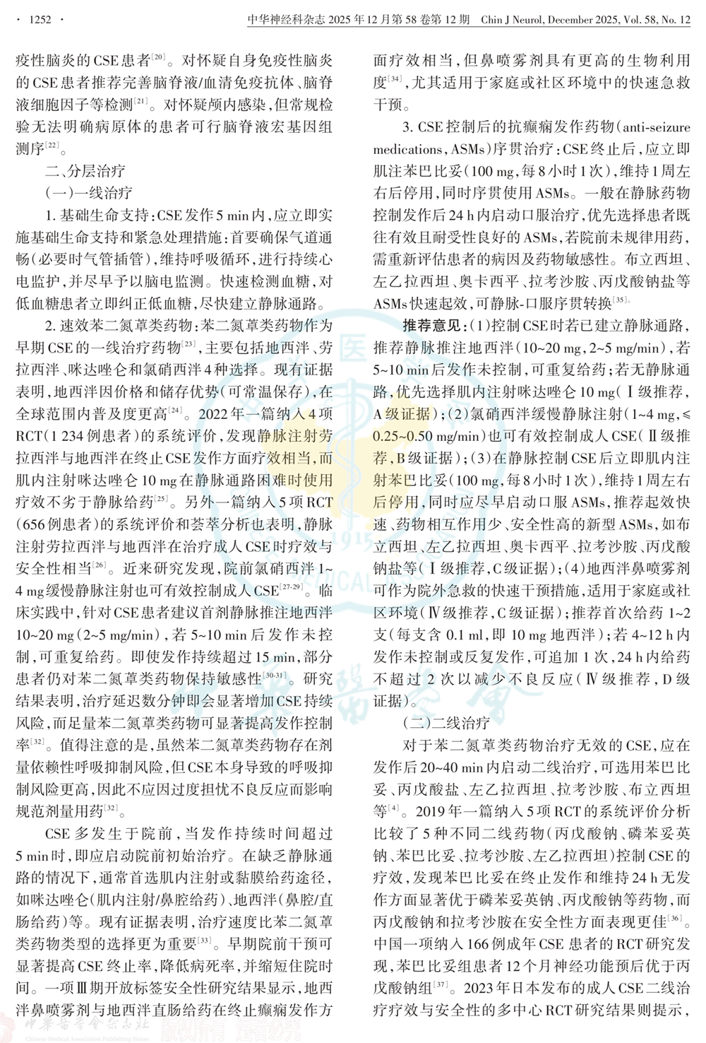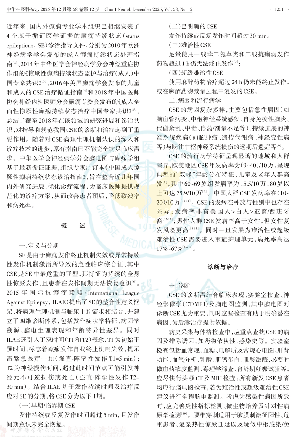 中国成人惊厥性癫痫持续状态诊治指南(2025版)