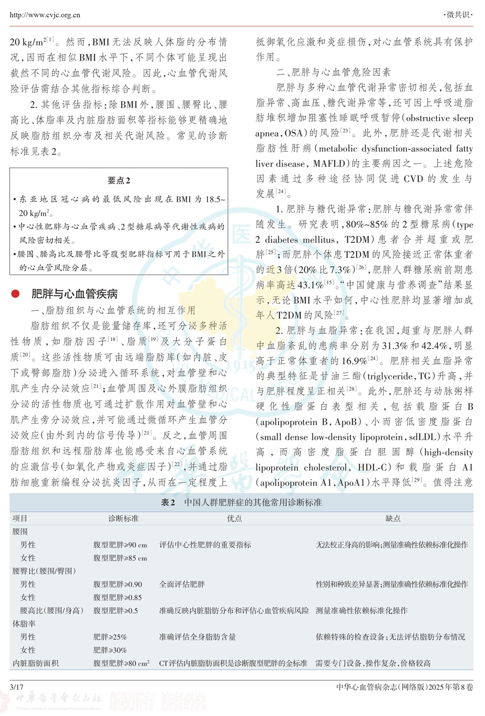 3、心血管疾病患者肥胖的流行病学 4、肥胖的定义、表型与诊断标准