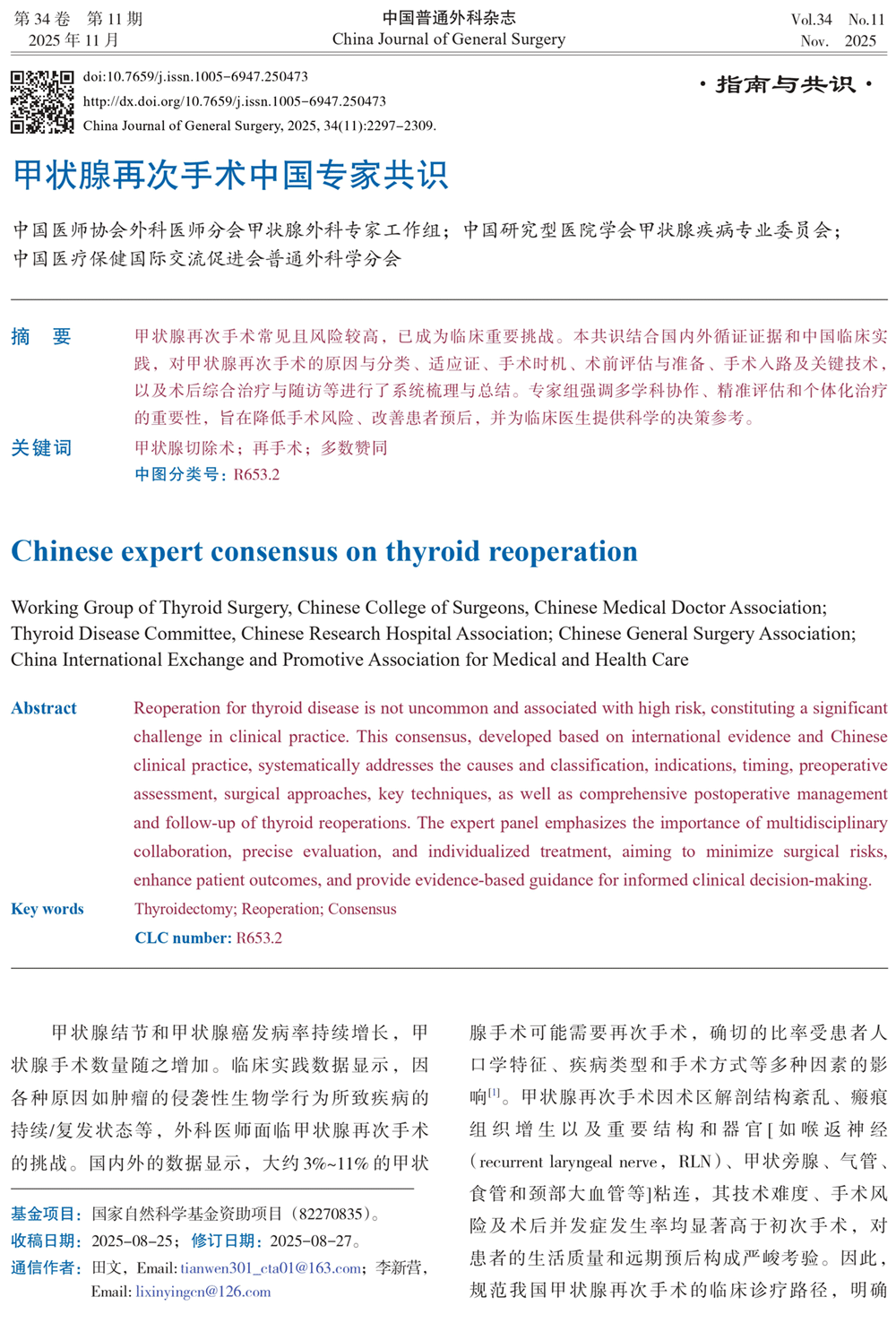 甲状腺再次手术中国专家共识(2025年)