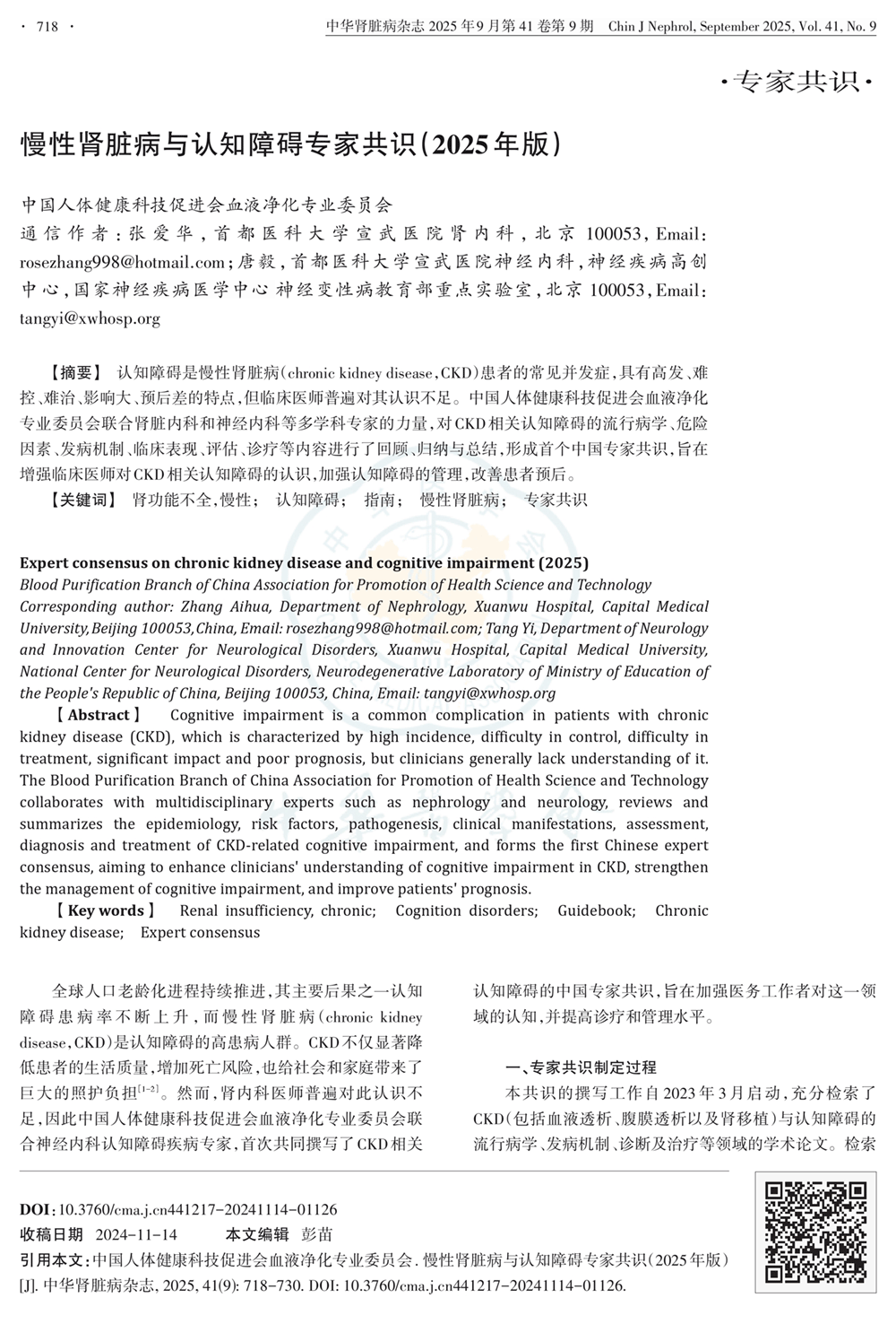 慢性肾脏病与认知障碍专业共识(2025年版)