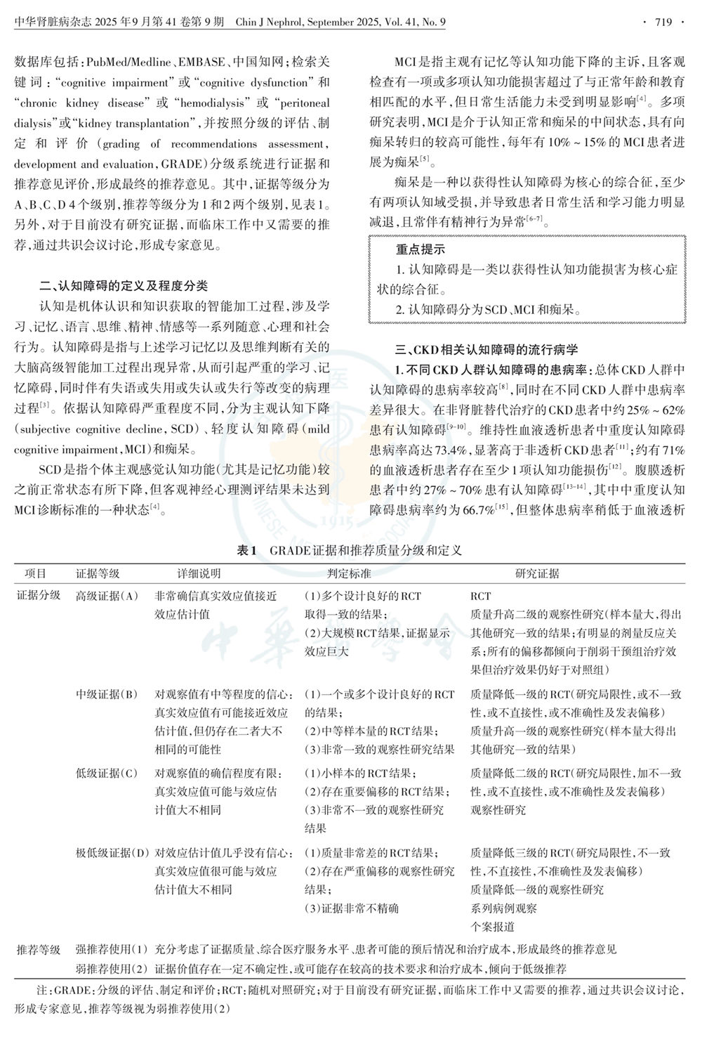 二、认知障碍的定义及程序分类 三、CKD相关认知障碍的流行病学