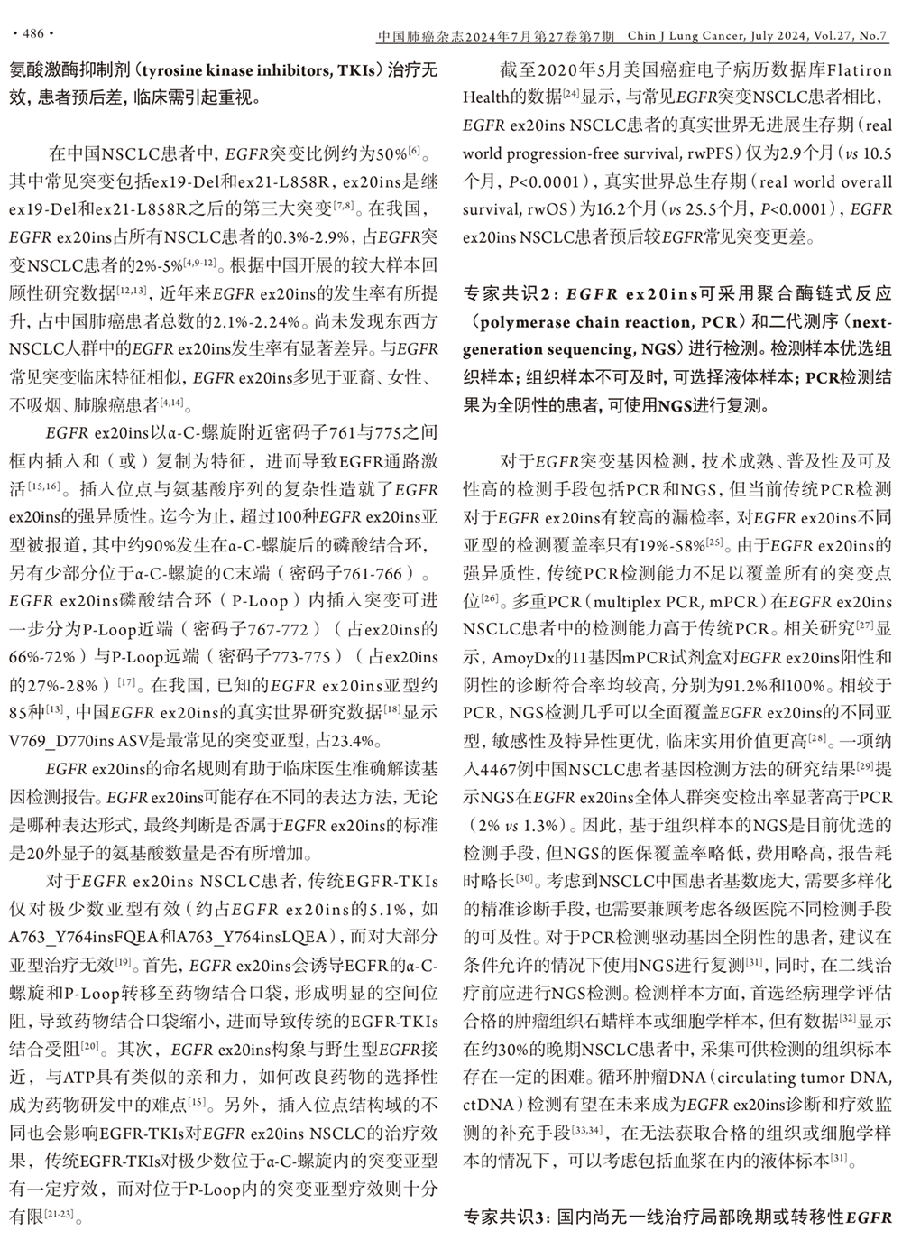 EGFR 20外显子插入突变非小细胞肺癌规范化诊疗中国专家共识(2024年版 )