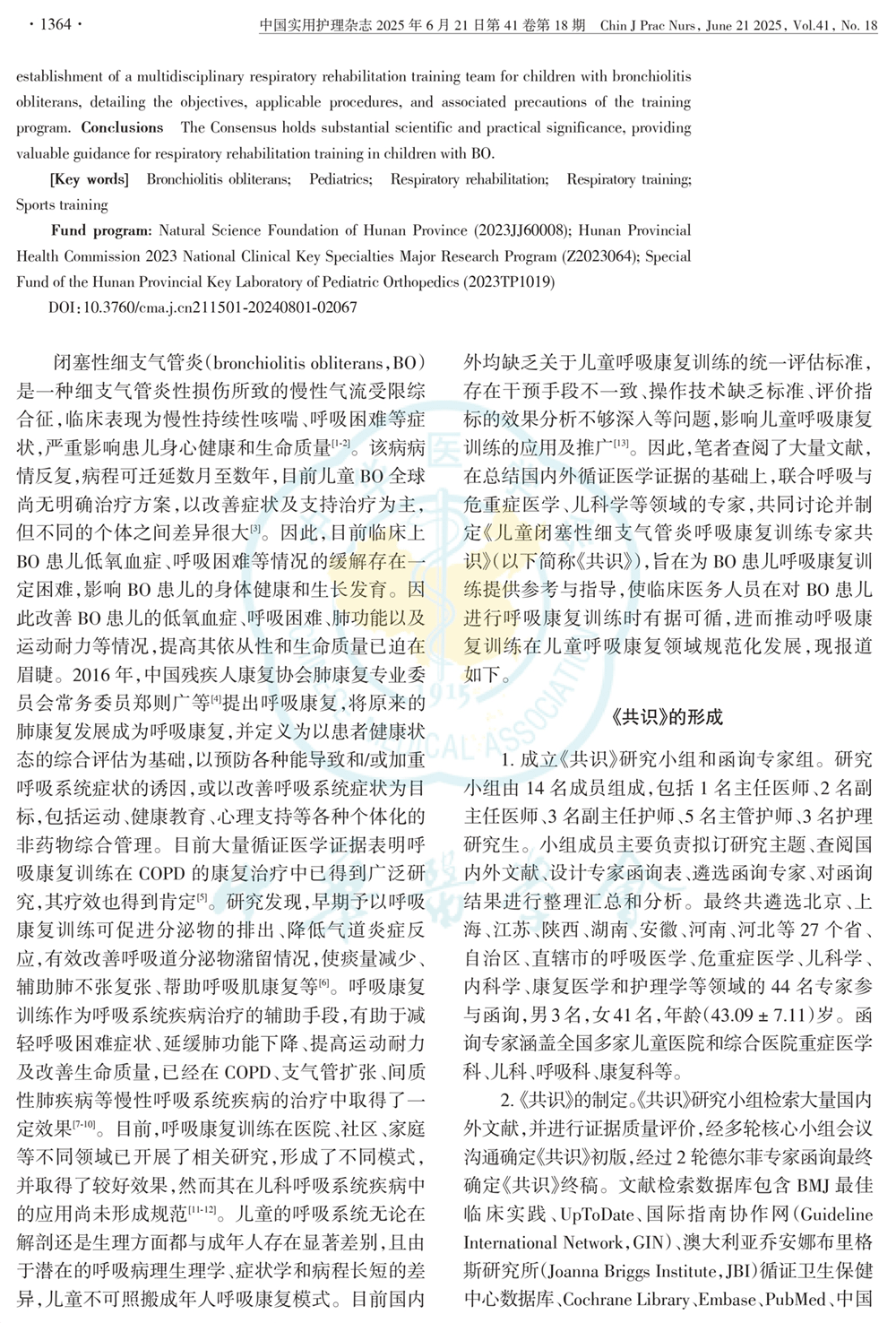 儿童闭塞性细支气管炎呼吸康复训练专家共识(2025年)