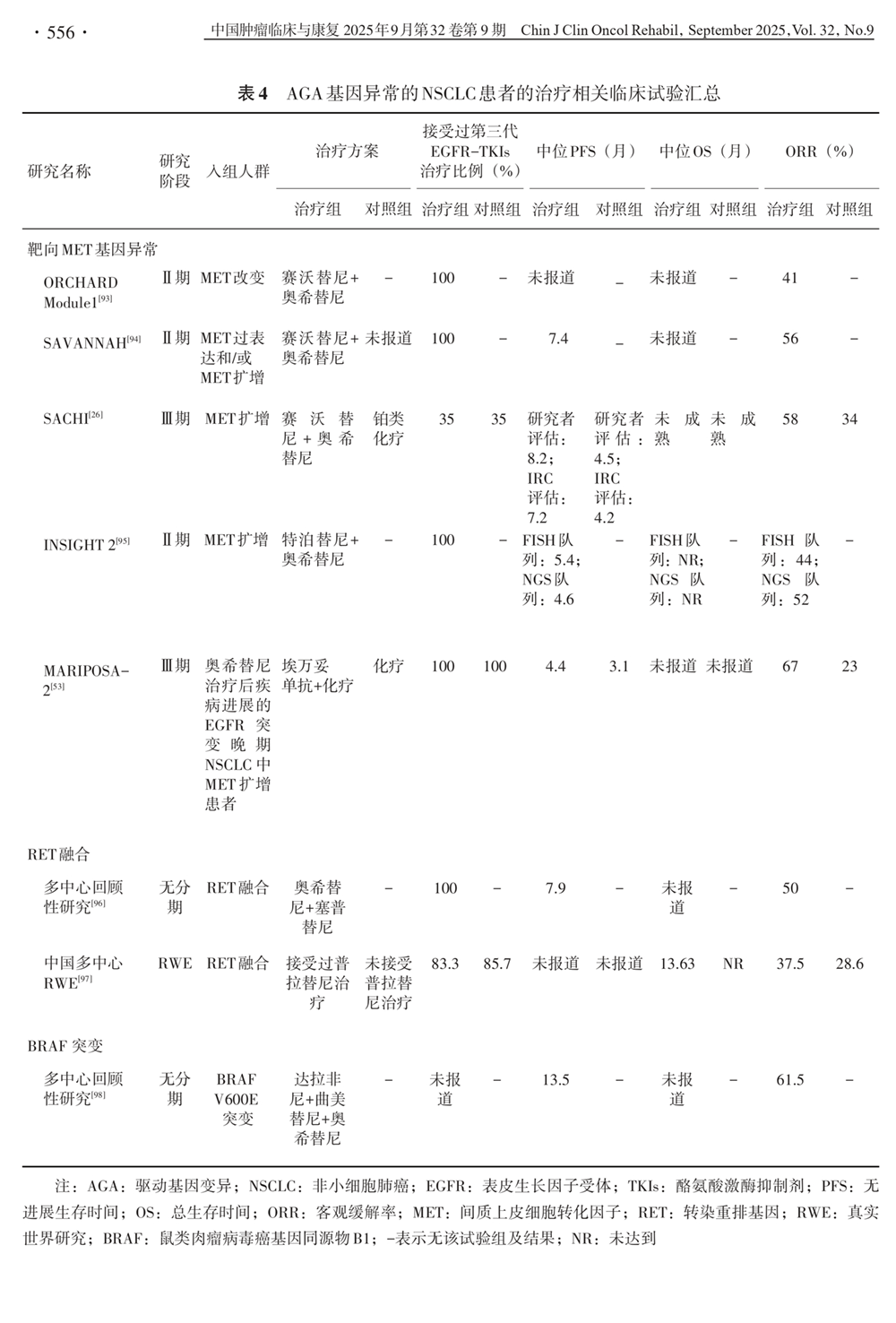 AGA基因异常的NSCLC患者的治疗相关临床试验汇总
